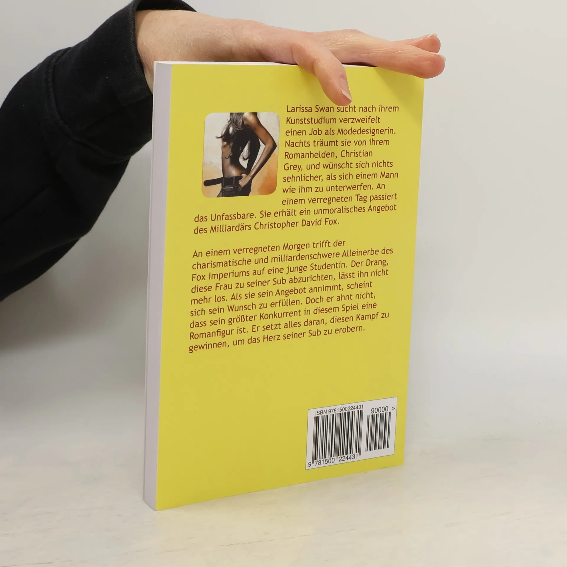 Larissa Swan sucht nach ihrem Kunststudium verzweifelt einen Job als Modedesignerin. Nachts träumt sie von ihrem Romanhelden, Christian Grey, und wünscht sich nichts sehnlicher, als sich einem Mann wie ihm zu unterwerfen. An einem verregneten Tag passiert das Unfassbare. Sie erhält ein unmoralisches Angebot des Milliardärs Christopher David Fox. An einem verregneten Morgen trifft der charismatische und milliardenschwere Alleinerbe des Fox Imperiums auf eine junge Studentin. Der Drang, diese Frau zu seiner Sub abzurichten, lässt ihn nicht mehr los. Als sie sein Angebot annimmt, scheint sich sein Wunsch zu erfüllen. Doch er ahnt nicht, dass sein größter Konkurrent in diesem Spiel eine Romanfigur ist. Er setzt alles daran, diesen Kampf zu gewinnen, um das Herz seiner Sub zu erobern. ******** Leseprobe siehe Blick ins Buch! ********