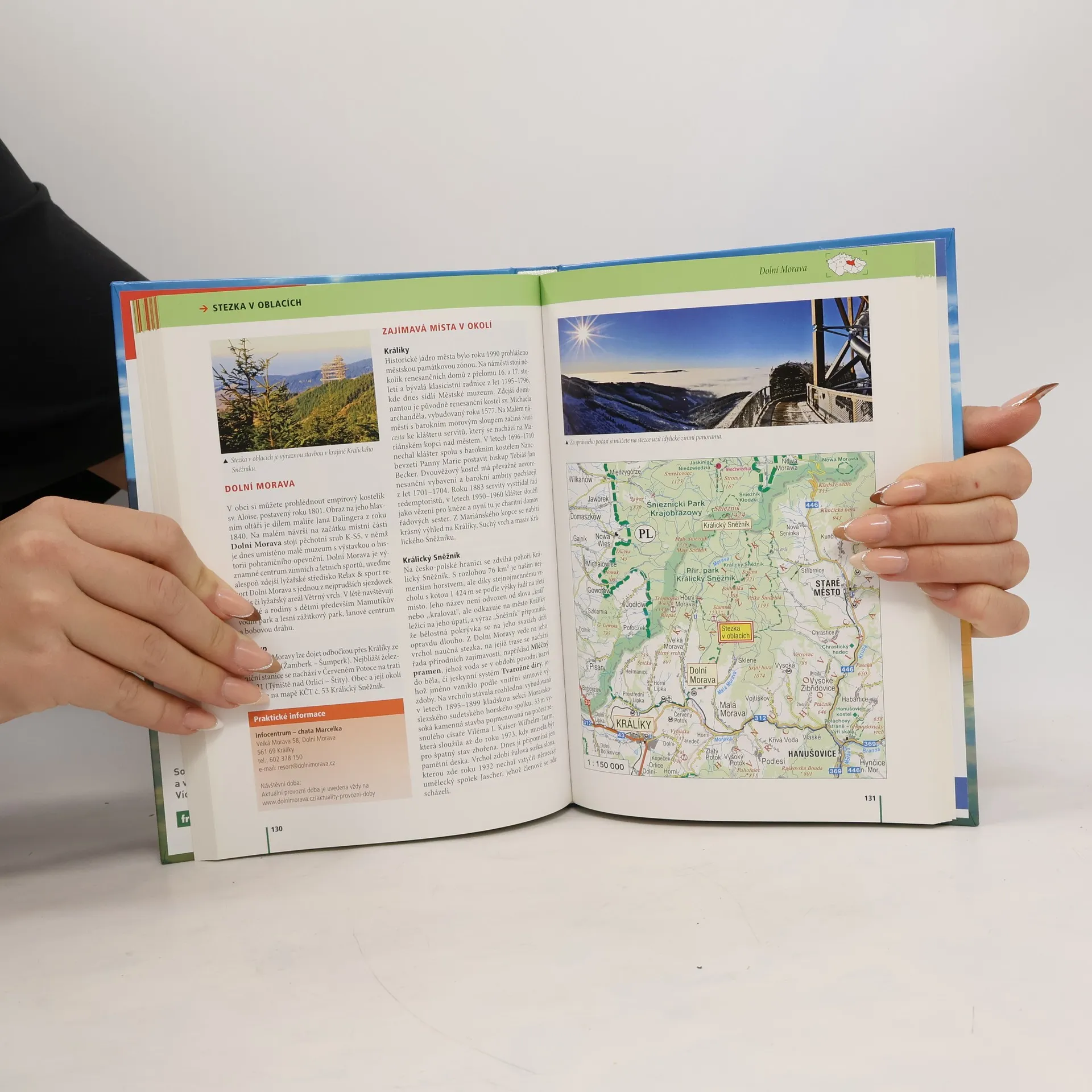 I tentokrát vás pozve na mnoho půvabných a zajímavých míst po celé České republice a jako pokaždé bude Vaší sympatickou a praktickou průvodkyní. Pojďte se dotknout nebes a zažít pořádný adrenalin na Stezce v oblacích poblíž Králického Sněžníku, podívat se na zoubek vlkům v Srní, otestovat vlastní fyzičku na krkonošské Cestě horských nosičů nebo zkrotit své závratě v liberecké horolezecké aréně. Máme tu ale tipy na výlety i pro ty méně dobrodružné povahy – malebnou procházku si uděláte údolím Brtnice nebo na valašský Olymp, vrch Soláň, někdy až pohádkové příběhy z historie si vyslechnete na čtyřech zámcích a jednom královském hradě a o lidské tvořivosti a šikovných českých ručičkách se dozvíte třeba ve Lhůtě nebo v České Třebové. 22. pokračování oblíbené ediční řady obsahuje tradičních padesát reportáží, doplněných fotografiemi, mapami a praktickými informacemi.