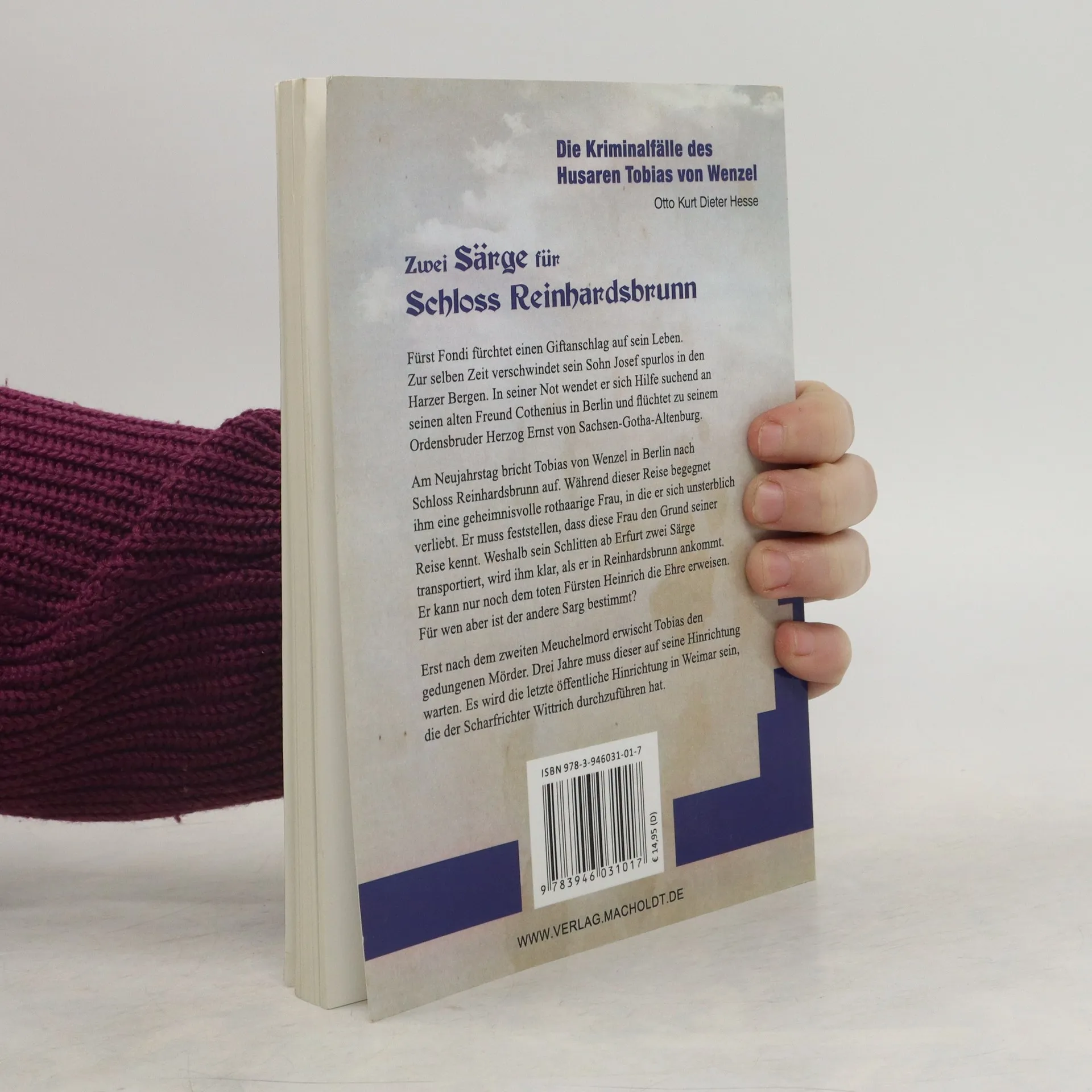 Fiktive Kriminalgeschichte. Fürst Fondi fürchtet einen Giftanschlag auf sein Leben. Zur selben Zeit verschwindet sein Sohn Josef spurlos in den Harzer Bergen. In seiner Not wendet er sich Hilfe suchend an seinen alten Freund Cothenius in Berlin und flüchtet zu seinem Ordensbruder Herzog Ernst von Sachsen-Gotha-Altenburg. Am Neujahrstag bricht Tobias von Wenzel in Berlin nach Schloss Reinhardsbrunn auf. Während dieser Reise begegnet ihm eine geheimnisvolle rothaarige Frau, in die er sich unsterblich verliebt. Er muss feststellen, dass diese Frau den Grund seiner Reise kennt. Weshalb sein Schlitten ab Erfurt zwei Särge transportiert, wird ihm klar, als er in Reinhardsbrunn ankommt. Er kann nur noch dem toten Fürsten Heinrich die Ehre erweisen. Für wen aber ist der andere Sarg bestimmt? Erst nach dem zweiten Meuchelmord erwischt Tobias den gedungenen Mörder. Drei Jahre muss dieser auf seine Hinrichtung warten. Es wird die letzte öffentliche Hinrichtung in Weimar sein, die der Scharfrichter Wittrich durchzuführen hat