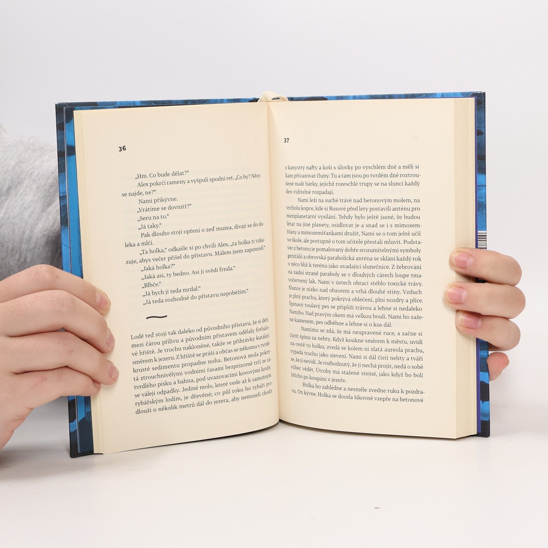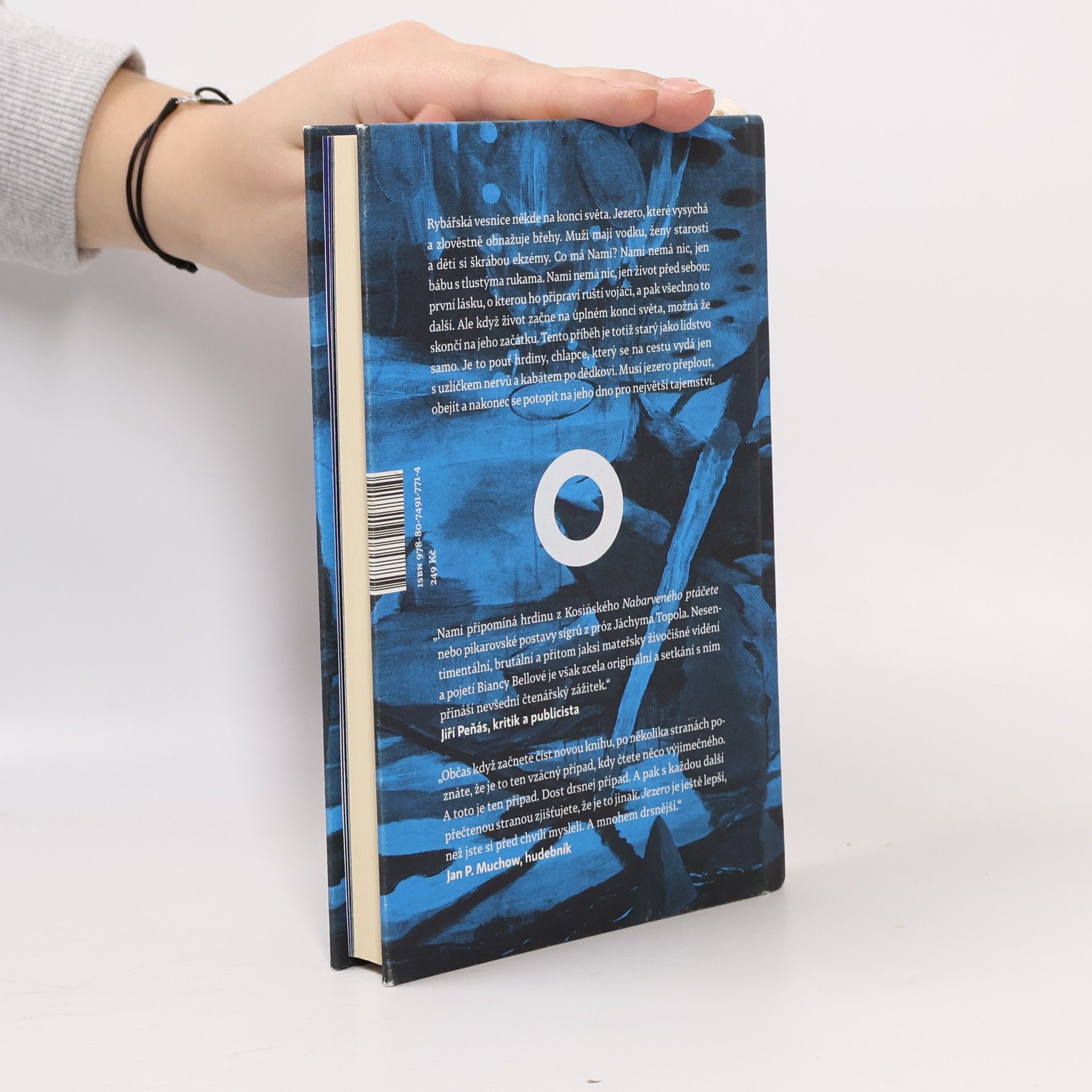 Příběh ze současnosti starý jako lidstvo samo. Rybářská vesnice někde na konci světa, u jezera, které vysychá a zlověstně vyhrnuje břehy. Muži mají vodku, ženy starosti a děti si škrábou ekzémy. Co má Nami? Nami nemá nic — jen bábu s tlustýma rukama. Nami nemá nic, jen život před sebou: první lásku, o kterou ho připraví ruští vojáci, a pak to všechno další. Raději na to nemyslet. Ale když život začne na úplném konci světa, možná že skončí na jeho začátku. Tenhle příběh je totiž starý jako lidstvo samo. Je to pouť hrdiny, chlapce, který na cestu vyráží jen s uzlíčkem nervů a kabátem po dědkovi. Musí do světa, aby hledal, a vrátit se domů, aby našel. Musí jezero přeplout, obkroužit a nakonec se potopit na jeho dno pro největší tajemství. Bianca Bellová napsala brilantní novelu, která se podobá i nepodobá jejím předchozím knihám. Zůstává syrovost vidění, přesný a úsečný jazyk. Ale tentokrát se ocitáme v úplně jiném světě, hutnějším, hlubším, osudovějším. Teprve zde jako by do sebe vše zapadlo. Jezero svými ledovými vodami svírá útroby.