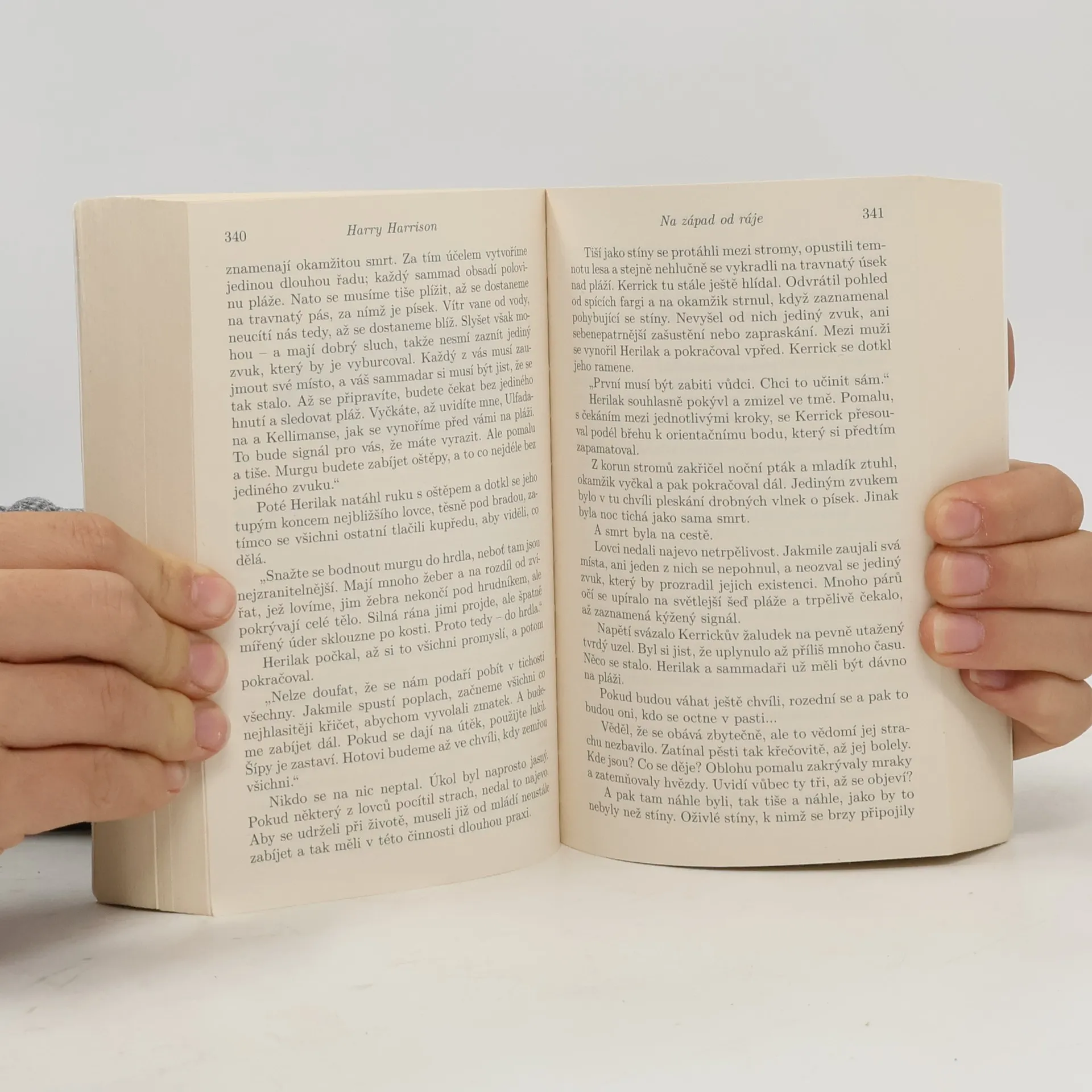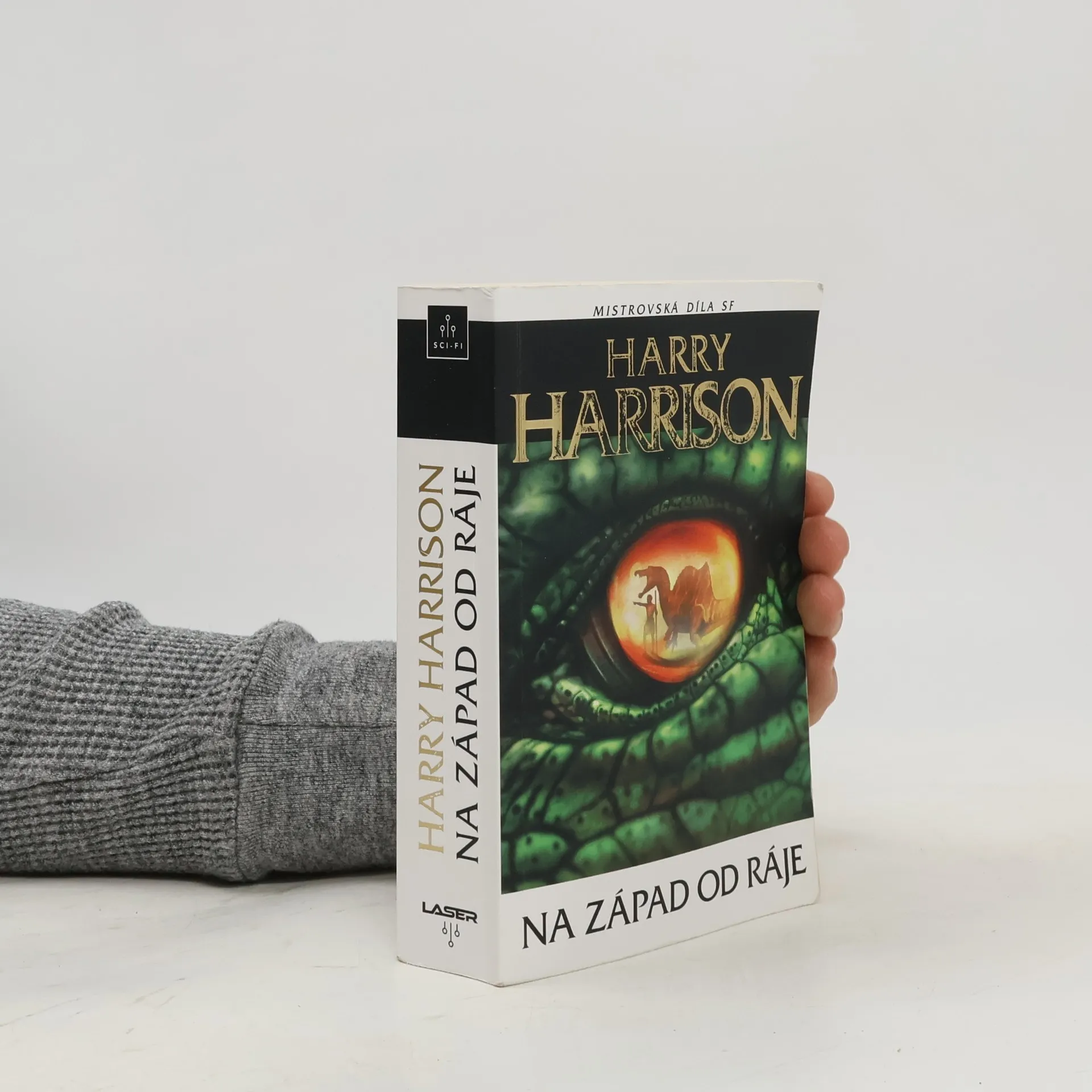 3. vydání. „Když dinosauři vládli Zemi…“ V tomto díle, vysoce hodnoceném čtenáři i kritikou, jí stále ještě vládnou. Vesmírná katastrofa, která před 65 miliony let ukončila éru praještěrů, se ve světě tohoto románu nikdy nestala. Vývoj obřích plazů pokračoval dál a vyvrcholil Yilané, nejinteligentnější a nejvyspělejší rasou na Zemi. Když jsou však její příslušníci příchodem doby ledové přinuceni překročit oceán, aby prozkoumali a kolonizovali rozsáhlý a neznámý kontinent, dojde k prudkému střetu s novým a divokým savčím plemenem, s nímž se dosud nikdy nesetkali. Tito savci chodí vzpřímeně, loví a používají primitivní kamenné nástroje – a zbraně… Na západ od ráje je jedním z nejlepších výtvorů Harryho Harrisona. Příběh titánského střetu dvou zcela odlišných kultur vtáhne čtenáře do vzrušujícího děje jako vír maelstromu.