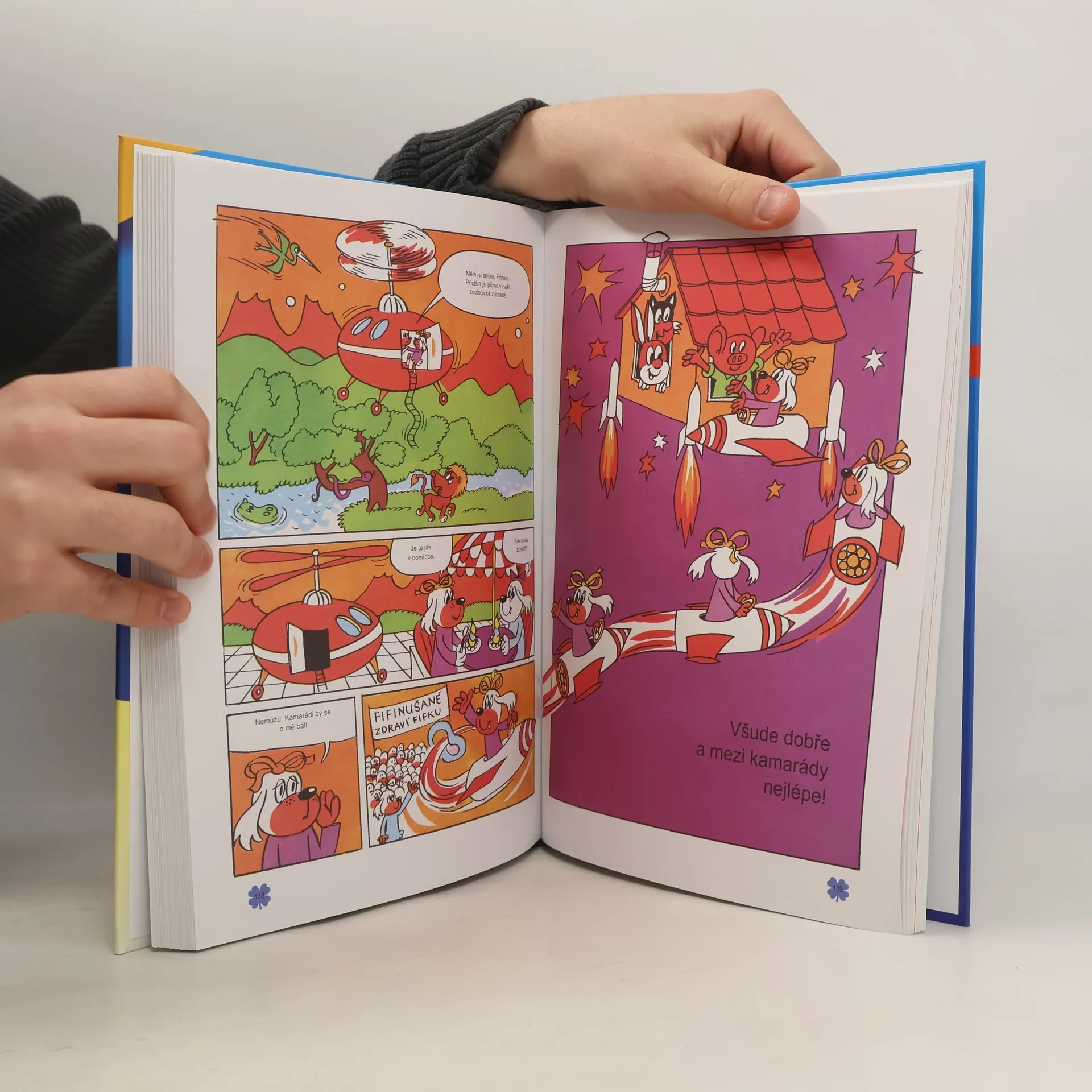 Souborné vydání historicky prvních dvanácti příběhů Čtyřlístku. Obsah: Vynálezy profesora Myšpulína Čtyřlístek mezi piráty Čtyřlístek v tajemném hradě Čtyřlístek dobývá vesmír Čtyřlístek na divokém západě Čtyřlístek v polárních krajích Velké dobrodružství Čtyřlístku Létající koberec Ke třem planetám Jeden den v Bubákově Letem kulatým světem Prázdniny na sněhu