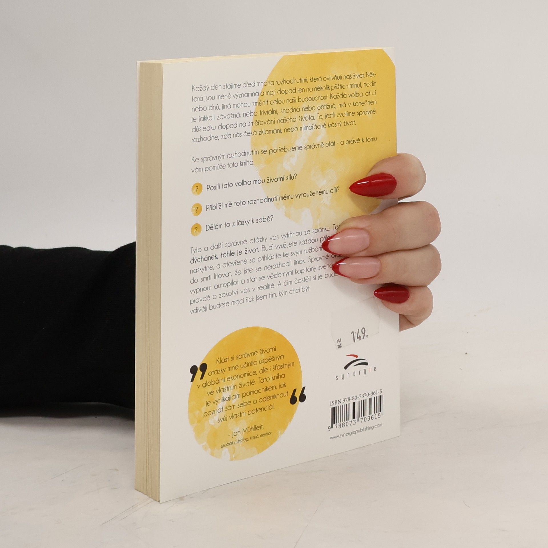 Každý den stojíme před mnoha rozhodnutími, která ovlivňují náš život. Některá jsou méně významná a mají dopad jen na několik příštích minut, hodin nebo dnů, jiná mohou změnit celou naši budoucnost. Každá volba, ať už je jakkoli závažná nebo triviální, snadná nebo obtížná, má v konečném důsledku dopad na směřování našeho života. To, jestli zvolíme správně rozhodne, zda nás čeká zklamání nebo mimořádně krásný život. Ke správným rozhodnutím se potřebujeme správně ptát - a právě k tomu vám pomůže tato kniha. Posílí tato volba mou životní sílu? Přiblíží mě toto rozhodnutí mému vytouženému cíli? Dělám to z lásky k sobě? Tyto a další správné otázky vás vytrhnou ze spánku. Tohle není čajový dýchánek, tohle je život. Buď využijete každou příležitost, která se vám naskytne, a otevřeně se přihlásíte ke svým tužbám a snům, nebo budete do smrti litovat, že jste se nerozhodli jinak. Správné otázky vám dovolí vypnout autopilota a stát se vědomými kapitány svého života. Přiblíží vás pravdě a zakotví vás v realitě. A čím častěji si je budete klást, tím pravdivěji budete moci říci: Jsem tím, kým chci být. Klást si správné životní otázky mne učinilo úspěšným v globální ekonomice, ale i šťastným ve vlastním životě. Tato kniha je vynikajícím pomocníkem jak poznat sám sebe a odemknout svůj vlastní potenciál. - Jan Mühlfeit, globální stratég, kouč, mentor