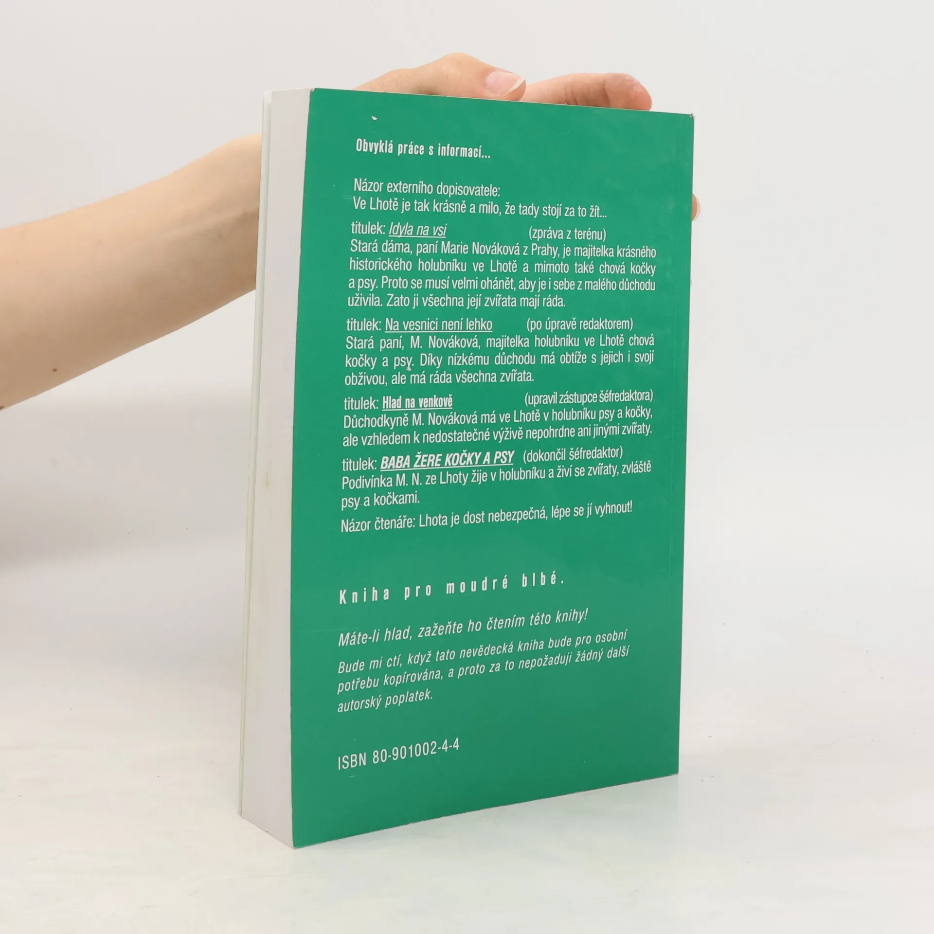 Kniha léčitele, sama sebe nazývajícího dědek kořenář, jež se zde dělí o své dlouholetou praxí nabyté zkušenosti z léčení nemocí známých i méně známých. Při léčení používá kromě bylinných koncentrátů vlastní výroby či různých mazání i další netradiční pomůcky, je vidět, že jeho metody jsou v praxi ověřené. Vše koření nadhledem a notná dávka humoru.