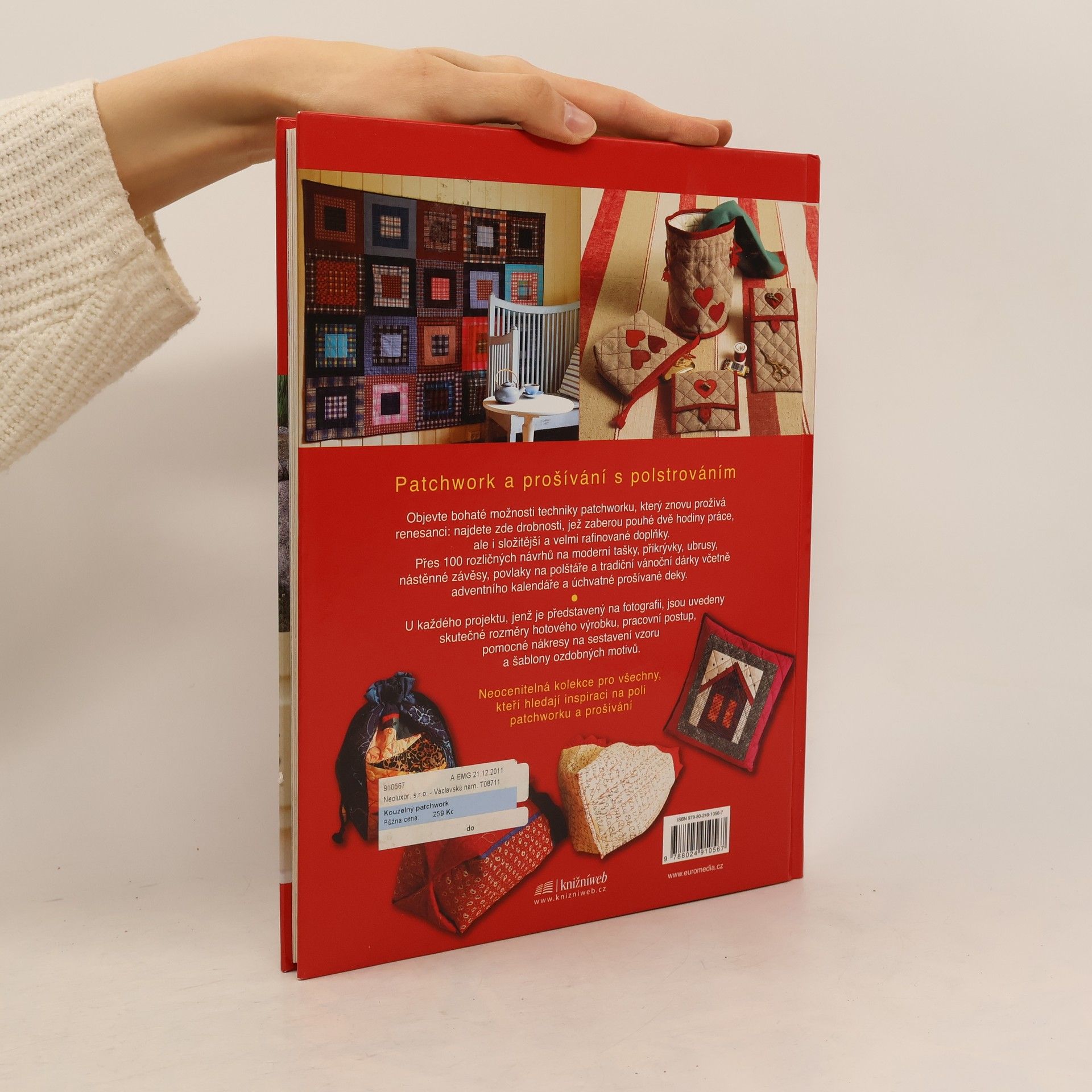 Objevte bohaté možnosti patchworku, který prožívá renesanci: najdete zde drobnosti, ale i složitější a rafinované doplňky: přes 100 rozličných návrhů na moderní tašky, přikrývky, ubrusy, nástěnné závěsy, povlaky na polštáře a tradiční vánoční dárky včetně adventního kalendáře a úchvatné prošívané deky. U každého projektu jsou uvedeny skutečné rozměry hotového výrobku, pracovní postup, pomocné nákresy na sestavení vzoru a šablony motivů.