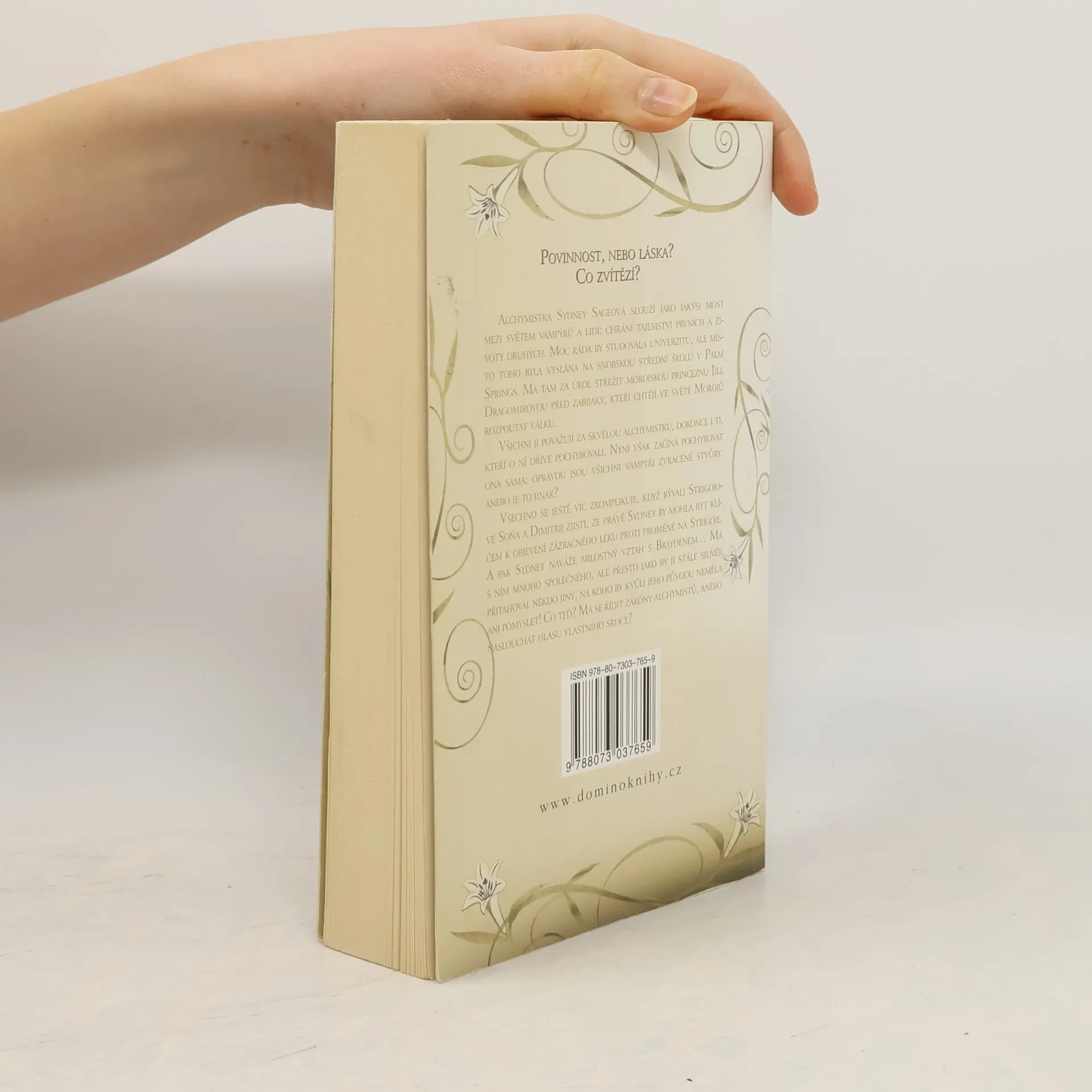 Povinnost, nebo láska? Co zvítězí? Alchymistka Sydney Sageová slouží jako jakýsi most mezi světem vampýrů a lidí: chrání tajemství prvních a životy druhých. Moc ráda by studovala univerzitu, ale místo toho byla vyslána na snobskou střední školu v Palm Springs. Má tam za úkol střežit morojskou princeznu Jill Dragomirovou před zabijáky, kteří chtějí ve světě Morojů rozpoutat válku. Všichni ji považují za skvělou alchymistku, dokonce i ti, kteří o ní dříve pochybovali. Nyní však začíná pochybovat ona sama: opravdu jsou všichni vampýři zvrácené stvůry, anebo je to všechno jinak? Všechno se ještě víc zkomplikuje, když bývalí Strigojové Soňa a Dimitrij zjistí, že právě Sydney by mohla být klíčem k objevení zázračného léku k proměně na Strigoje. A pak Sydney naváže milostný vztah s Braydenem… Má s ním mnoho společného, ale přesto jako by ji stále silněji přitahoval někdo jiný, na koho by kvůli jeho původu neměla ani pomyslet! Co teď? Má se řídit zákony alchymistů, anebo naslouchat hlasu vlastního srdce?