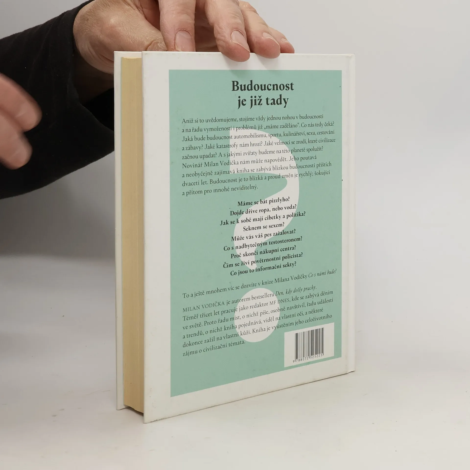 Aniž si to uvědomujeme, stojíme vždy jednou nohou v budoucnosti a na řadu vymožeností i problémů již „máme zaděláno“. Co nás tedy čeká? Jaká bude budoucnost v oblasti automobilismu, sportu, kulinářství, sexu, cestování a zábavy. Jaké katastrofy nám hrozí? Jaké velmoci se zrodí, které civilizace začnou upadat? A s jakými zvířaty budeme na této planetě spolužít? Novinář Milan Vodička nám může napovědět. Jeho poutavá a neobyčejně zajímavá kniha se zabývá blízkou budoucností příštích dvaceti let. Budoucnost je to blízká, ale proud změn je rychlý; obrovský.