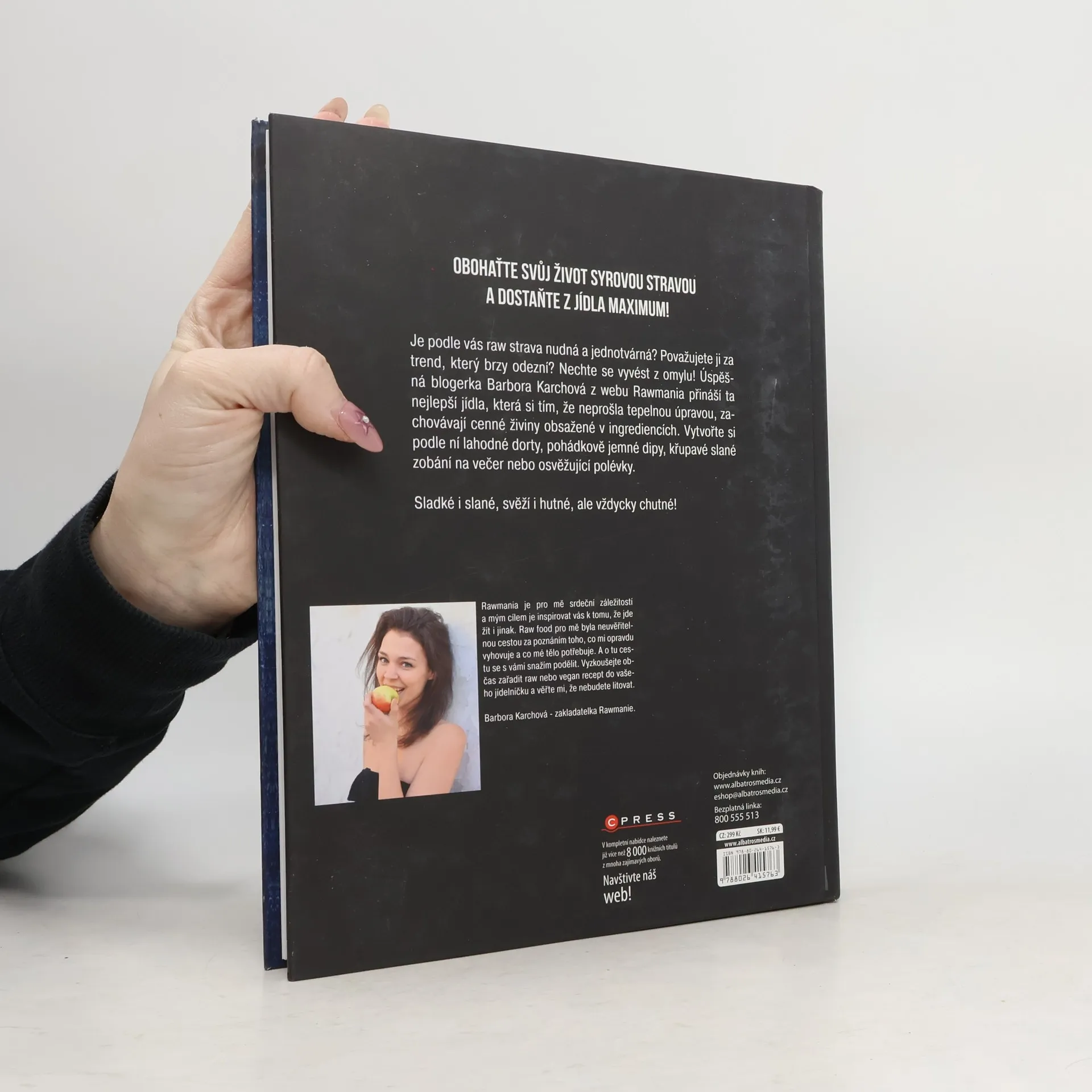 Zajímáte se o zdravou výživu? Pak víte, že raw strava není trendem, který odezní, a že rozhodně není jednotvárná a nudná. Poznejte ta nejlepší jídla, která si tím, že neprošla tepelnou úpravou, zachovala cenné živiny obsažené v ingrediencích. Vytvořte si podle úspěšné blogerky Barbory Karchové z webu Rawmania lahodné dorty, pohádkově jemné dipy, křupavé slané zobání na večer nebo osvěžující polévky. Sladké i slané, svěží i hutné, ale vždycky chutné!