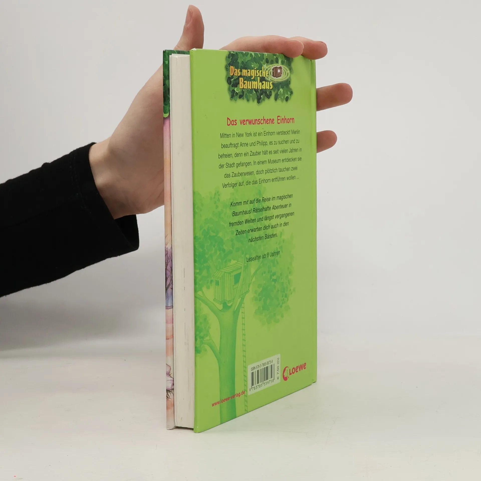 Das Buch ist bei deiner Buchhandlung vor Ort und bei vielen Online-Buchshops erhältlich! + Bücher, die Kinder gerne lesen wollen + Beliebte Themen: Abenteuer, Tiere, fremde Länder und Einhörner + Hochwertiges Hardcover + Mit vielen Illustrationen + Bereits über 10 Millionen verkaufte Bücher der Baumhaus-Reihe + Ausgewogenes Text-Bild-Verhältnis + Große Schrift + Kurze Kapitel + Mitten in New York ist ein Einhorn versteckt! Merlin beauftragt Anne und Philipp, es zu suchen und zu befreien, denn ein Zauber hält es seit vielen Jahren in der Stadt gefangen. In einem Museum entdecken sie das Zauberwesen, doch plötzlich tauchen zwei Verfolger auf, die das Einhorn entführen wollen... Komm mit auf die Reise im magischen Baumhaus! Rätselhafte Abenteuer in fremden Welten und längst vergangenen Zeiten erwarten dich auch in den nächsten Bänden. Die beliebte Kinderbuch-Reihe von Bestsellerautorin Mary Pope Osborne! Die Geschwister Anne und Philipp reisen mit dem magischen Baumhaus durch die Zeit. Sie erleben spannende Abenteuer, entdecken ferne Länder und lernen viele berühmte Persönlichkeiten kennen.