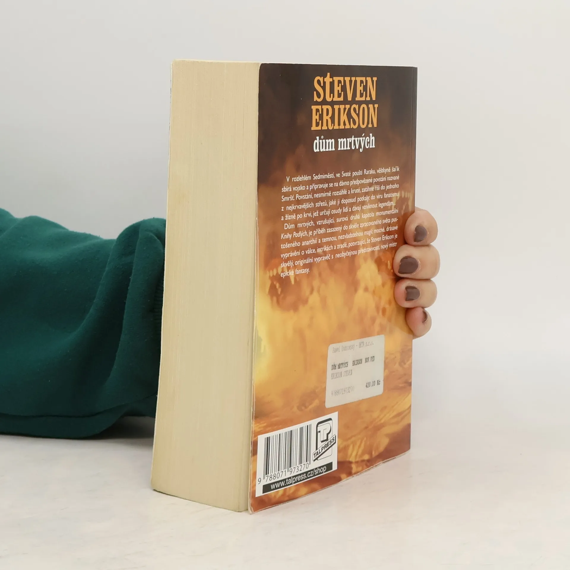 Malazská říše, oslabená událostmi v Darúdžhistánu, balancuje na pokraji chaosu. V rozlehlém Sedmiměstí, ve Svaté poušti Raraku, věštkyně šai'ik sbírá vojsko a připravuje se na dávno předpovězené povstání nazvané Smršť. Povstání, nesmírně rozsáhlé a kruté, zatáhne říši do jednoho z nejkrvavějších střetů, jaké ji doposud potkaly: do víru fanatismu a žízně po krvi, jež určují osudy lidí a dávají vzniknout legendám… Dům mrtvých, vzrušující, surová druhá kapitola monumentální malazské Knihy Padlých, je příběh zasazený do skvěle zpracovaného světa pustošeného anarchií a temnou, nezvladatelnou magií; mocné, drásavé vyprávění o válce, intrikách a zradě, potvrzující, že Steven Erikson je skvělý, originální vypravěč s neobyčejnou představivostí, nový mistr epické fantasy.