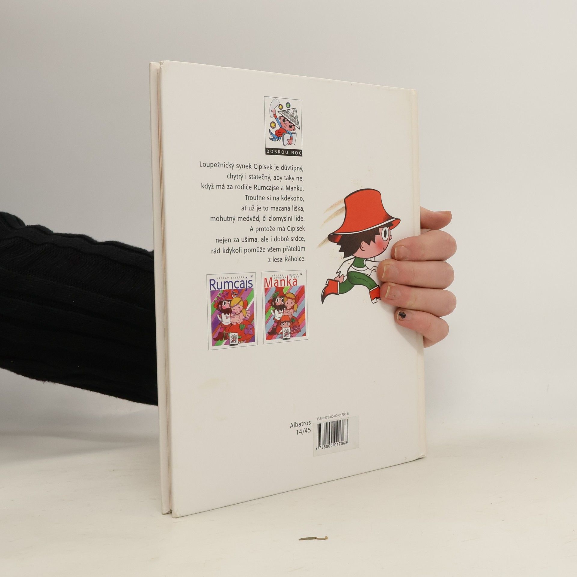 Cipísek je synek Rumcajse a Manky a chytrostí si s nimi v ničem nezadá. Však hned jak se narodil, vylezl k veverce do hnízda na borovici a louskal s ní ořechy. Umí přelstít lišku, jelena, ba i největšího medvěda z lesa! Dostane se z každé šlamastyky, vždycky si ví rady. A protože je dobrého srdce, má v lese spoustu přátel - víly, vodníka Volšovečka, ohnivého mužíčka a řadu dalších. Až si o něm všechno přečtete, jistě se stane i vaším kamarádem. Ilustroval Radek Pilař.