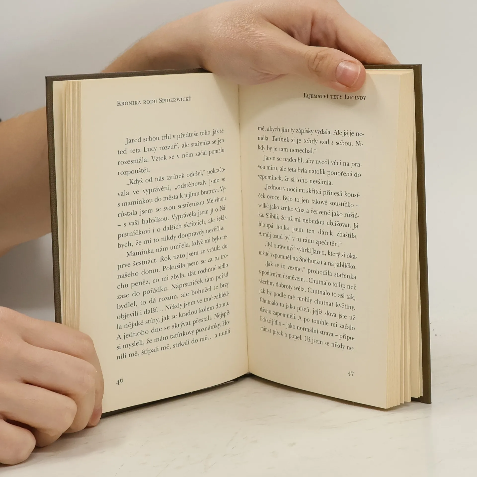 Sourozenci Graceovi se s maminkou přestěhovali do polorozpadlého domu rodu Spiderwicků a nestačí se divit. Sotva na půdě objeví deník strýčka Arthura, který je plný postřehů o nadpřirozených silách, překvapí je domácí skřítek Náprstníček. A sotva se vypořádají s bandou skřetů, která si přišla pro strýčkovy zápisky, je na obzoru další malér: kniha je fuč! Sourozenci Graceovi tedy navštíví tetu Lucindu ... Pokračování napínavého příběhu pro čtenáře od devíti let je plný napětí, tajemných kouzel i humoru.
