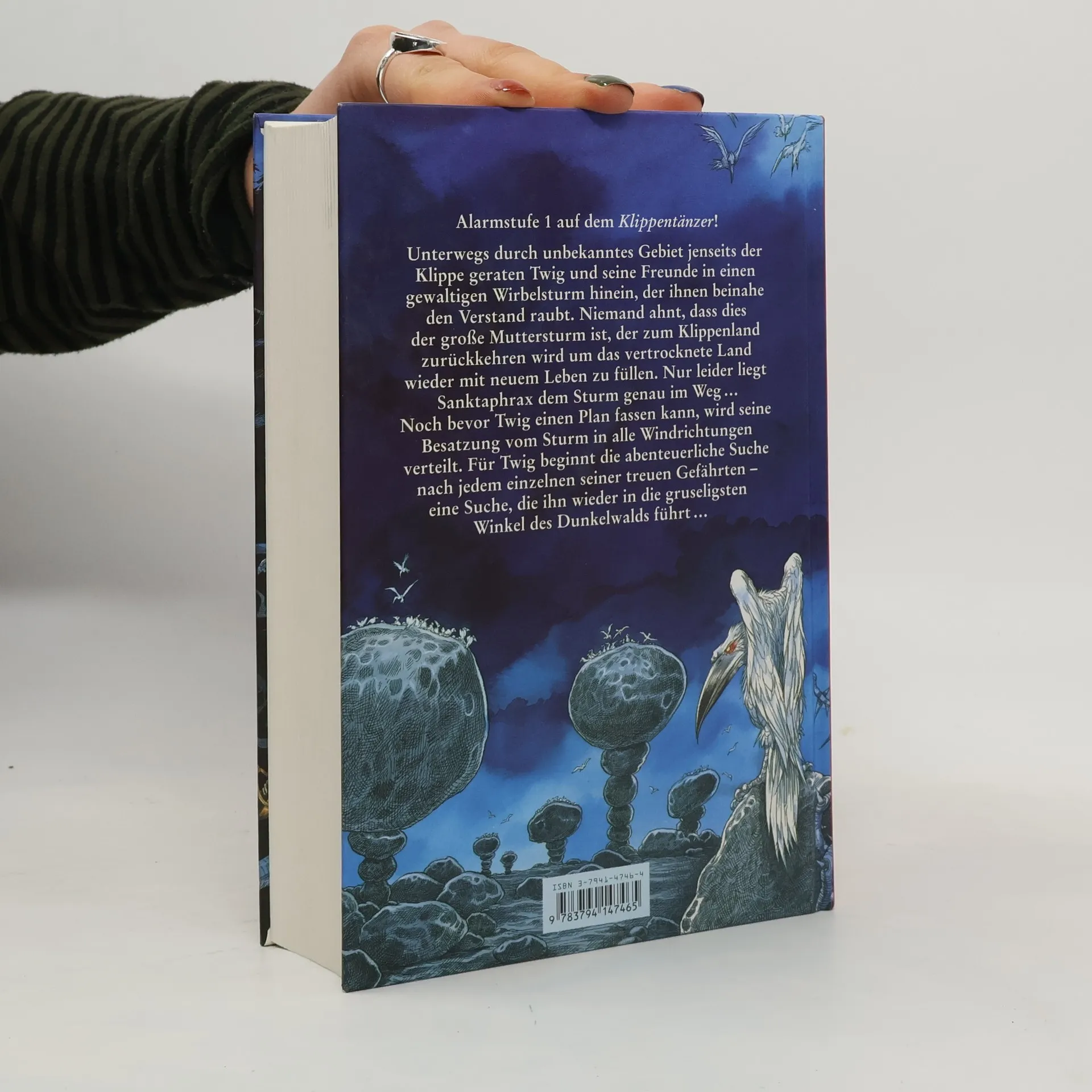 Alarmstufe 1 in Sanktaphrax! Twig und seine Mannschaft fahren auf dem Klippentänzer durch unbekanntes Gebiet jenseits der Klippe. Sie halten Ausschau nach Twigs Vater, Captain Wolkenwolf, der Schiffbruch erlitten hat. Dabei geraten sie in einen gewaltigen Wirbelsturm hinein, der die Mannschaft beinahe um den Verstand bringt. Was sie noch nicht wissen: Dies ist der große Muttersturm, der zum Klippenland zurückkehren wird um das vertrocknete Land wieder mit neuem Leben zu füllen - doch es besteht die Gefahr, dass Sanktaphrax dabei zerstört wird. Es sei denn. Noch bevor Twig einen Plan fassen kann, wird die Besatzung des Klippentänzers vom Sturm in alle Windrichtungen verteilt. Für Twig beginnt die abenteuerliche Suche nach jedem einzelnen seiner treuen Gefährten - eine Suche, die ihn wieder in die gruseligsten Winkel des Dunkelwalds führt.