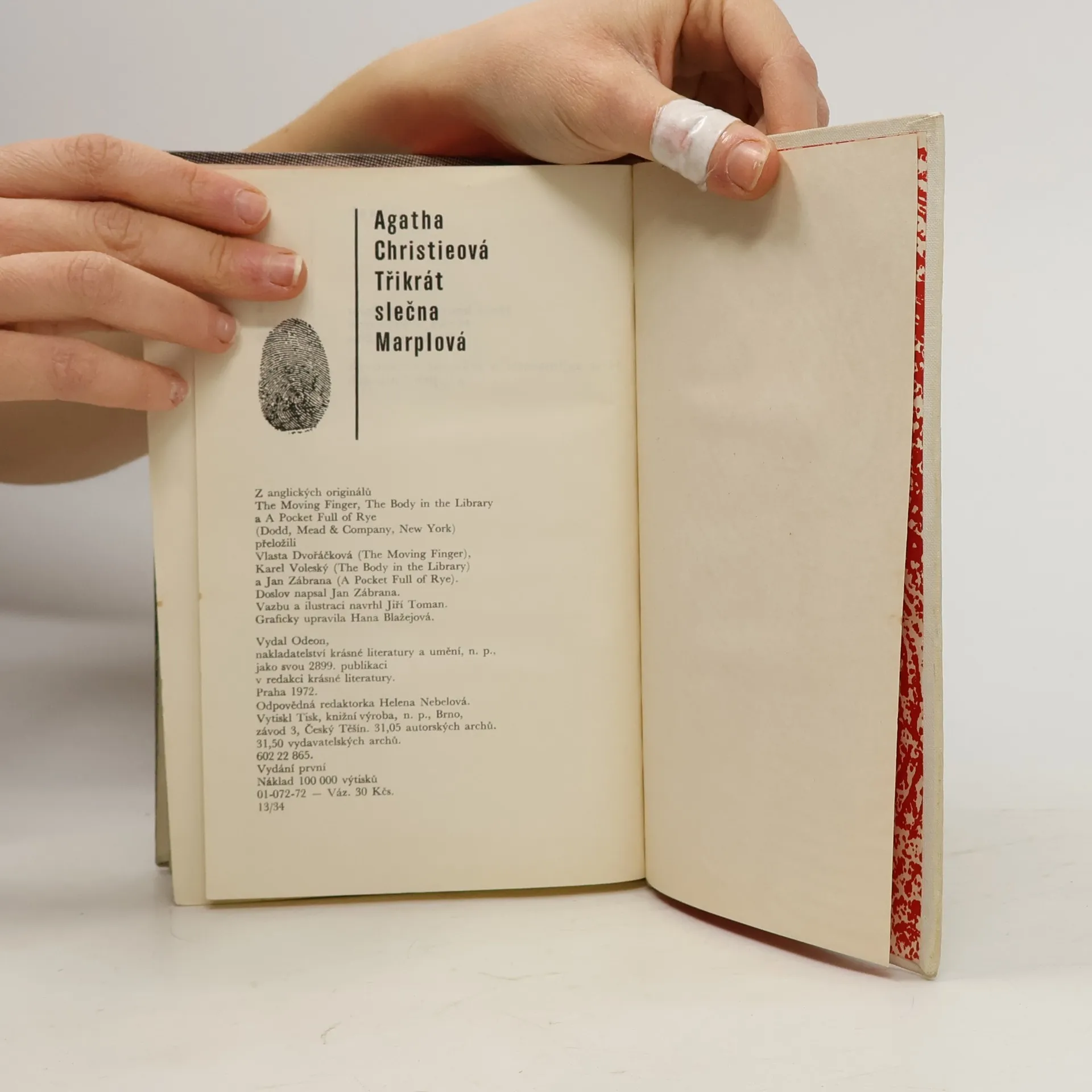 Výbor tří detektivních románů se slečnou Marplovou: Není kouře bez ohýnku, Mrtvá v knihovně a Kapsa plná žita. První vydání.