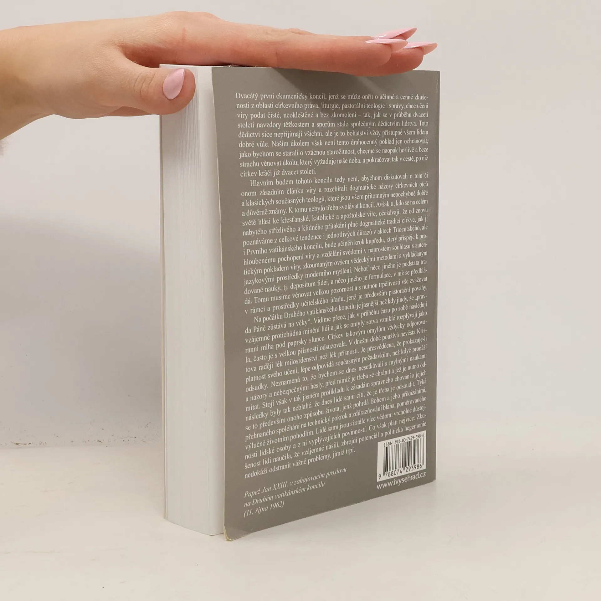 Dnes, s odstupem poloviny století, už můžeme bezpečně povědět, že osobností papeže Jana XXIII. a jím svolaným Druhým vatikánským koncilem začalo nové a nadějné období v životě církve, otevírající se po letech společenské izolace nejen celému křesťanstvu, ale i světu svým programem aggiornamenta, „zdnešnění“. Kniha známého teologa, profesora Otto H. Pesche, vycházející nyní ve druhém vydání, zevrubně informuje o všech velkých koncilových tématech. Umožňuje nadto i nahlédnout do lidských zápasů o jednotlivé formulace, dokud jejich znění nedosáhlo náležité zralosti. K hlubšímu pochopení koncilových jednání i závěrů přispívá autor i četnými postřehy z církevních dějin. Česky dosud žádná jiná kniha o Druhém vatikánském koncilu nevyšla.