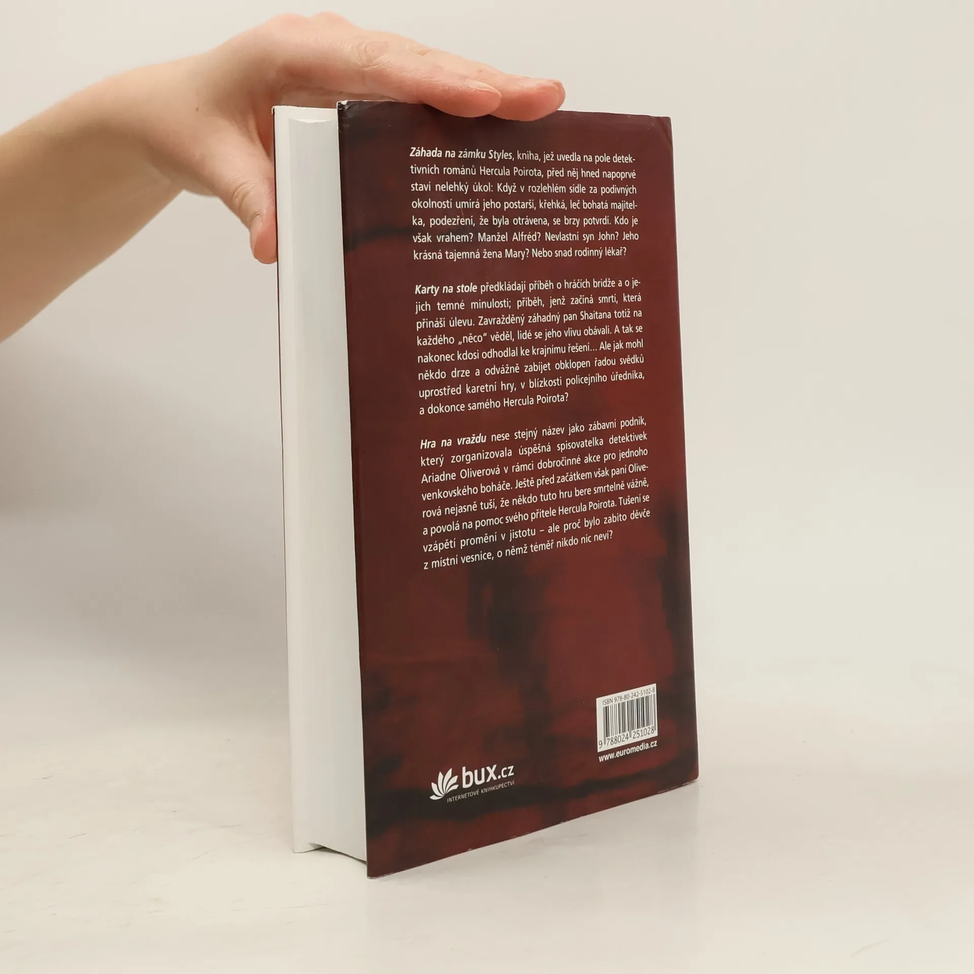 Kolekci tří příběhů z pera Agathy Christie spojuje legendární postava jednoho z celosvětově nejoblíbenějších vyšetřovatelů zločinů – není jím nikdo jiný než výstřední Belgičan Hercule Poirot, proslulý svým vzezřením, chováním, ale především malými šedými buňkami, které vyřeší i ten nejzapeklitější případ. Ať už je to náhlé úmrtí bohaté paní Ingelthorpové v Záhadě na zámku Styles z roku 1921 (spisovatelčině debutu, v němž se Poirot na poli detektivních románů představil úplně poprvé), vražda záhadného pana Shaitany spáchaná během partie bridže v Kartách na stole z roku 1936 nebo do třetice násilná smrt nevinné dívky ve Hře na vraždu z roku 1956 – Poirot se svým typickým šarmem a pečlivostí vždy dospěje k odhalení pravého, byť seberafinovanějšího viníka.