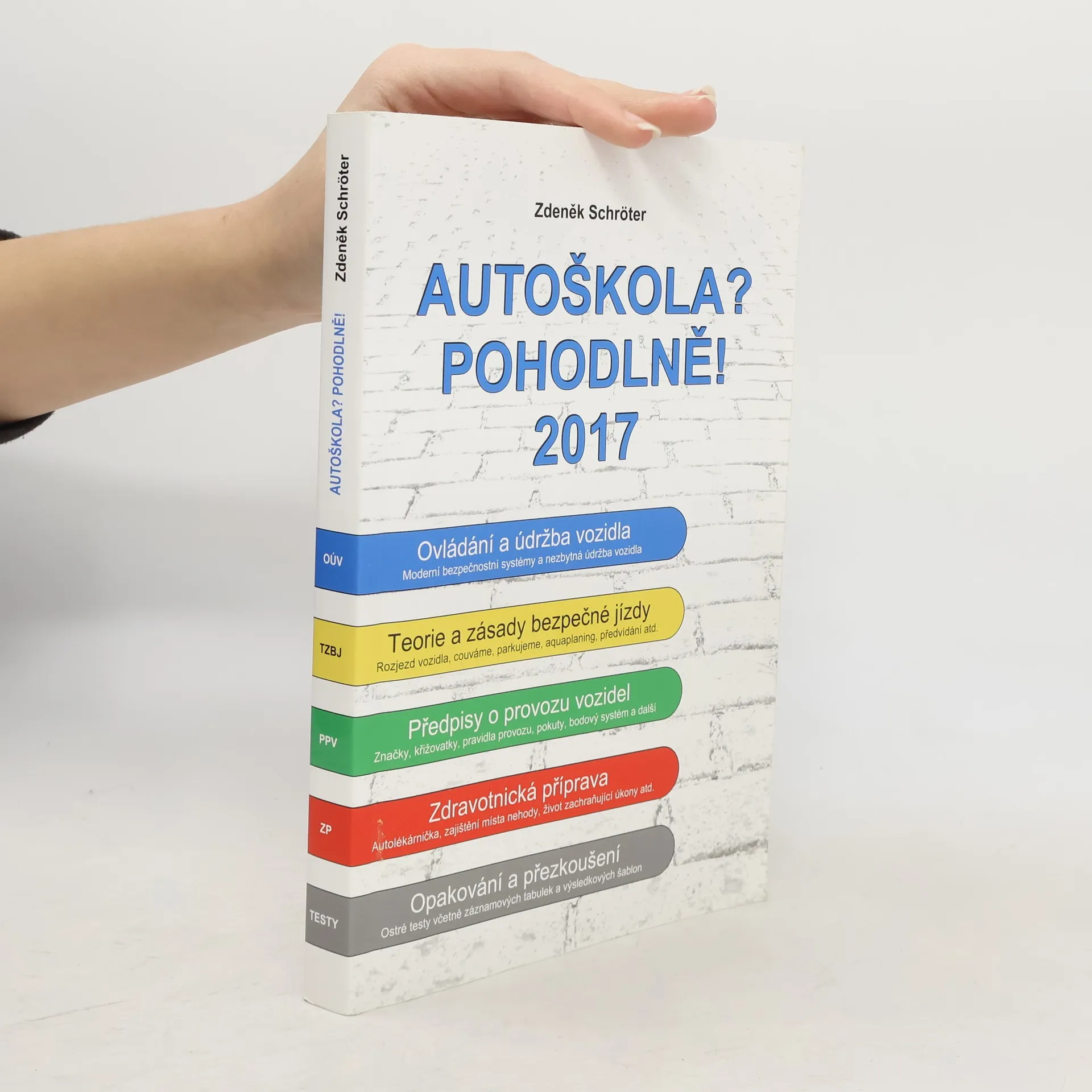Již osmnácté aktualizované vydání této učebnice přináší pečlivý výběr zejména té látky, která je nutná pro úspěšné složení všech částí závěrečné zkoušky. Čtenáři volí tuto učebnici pro její názornost, velké množství fotografií a obrázků, i pro její celkovou kreativitu. Komiksovým způsobem vedený výklad látky se cíleně vztahuje vždy ke konkrétnímu vozidlu, řidiči, dopravní značce, apod. Barevné rozlišení jednotlivých témat zaručuje rychlé vyhledání příslušné učební látky. Součástí publikace jsou i tzv. ostré testy včetně tabulek pro zápis správných odpovědí a vyhodnocovacích šablon pro kontrolu úspěšnosti.