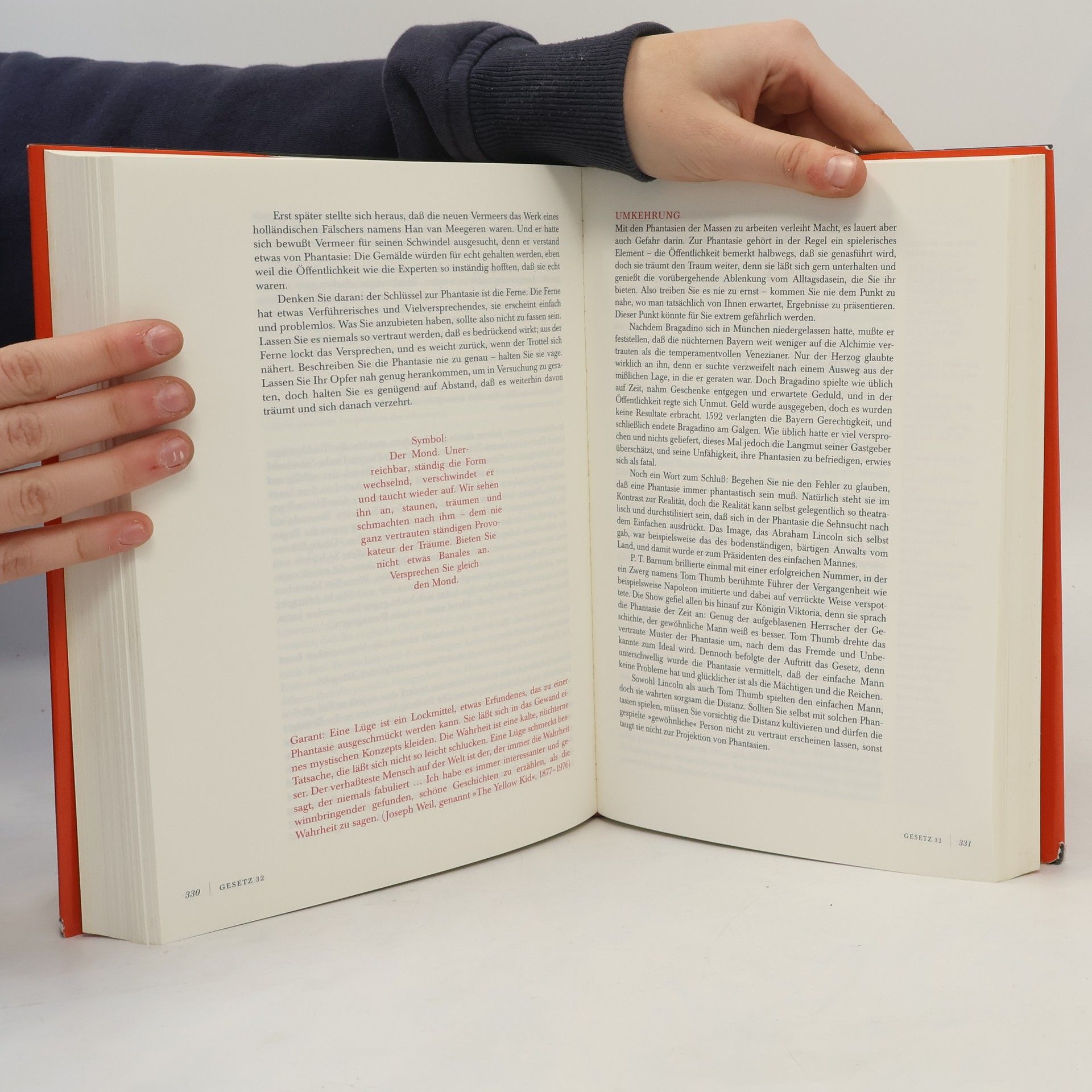 Das Spiel mit der Macht liegt in der Natur des Menschen. Jeder kämpft um seine eigene Macht, jeder fürchtet die Macht der anderen, aber niemand weiß so recht, wie Macht zustande kommt und wie sie wirkt. Nun hat Robert Greene ein großes Buch über die Macht geschrieben, das gründlichste seit Machiavelli. In 48 Gesetzen faßt er zusammen, wie man im Privatleben, im Beruf und in der Politik Macht erkämpft und verteidigt. Da kann man zum Beispiel nachlesen, wie man sich einen Freund zum Feind macht, um im Gegenzug einen gefährlichen Feind als Freund zu gewinnen. Wer sich in solchen Fragen unsicher fühlt, hält sich an die zahlreichen Geschichten von großen Triumphen und Niederlagen im Kampf um die Macht, die Greene in der aktuellen Politik, in der Geschichte, in der Philosophie und in der Literatur gefunden hat. So verbindet sich Belehrung mit allerbester Unterhaltung. Dieses Buch werden alle lesen, die nach oben kommen oder oben bleiben wollen. Es ist aber auch ein Buch für alle, die endlich die Mechanismen der Macht durchschauen wollen, um sich für mögliche Machtkämpfe zu wappnen. Joost Elffers hat für diese in jeder Hinsicht unkonventionelle Enzyklopädie ein außergewöhnliches Layout entworfen, so daß jeder rasch finden wird, was er schon immer über die Macht wissen wollte.