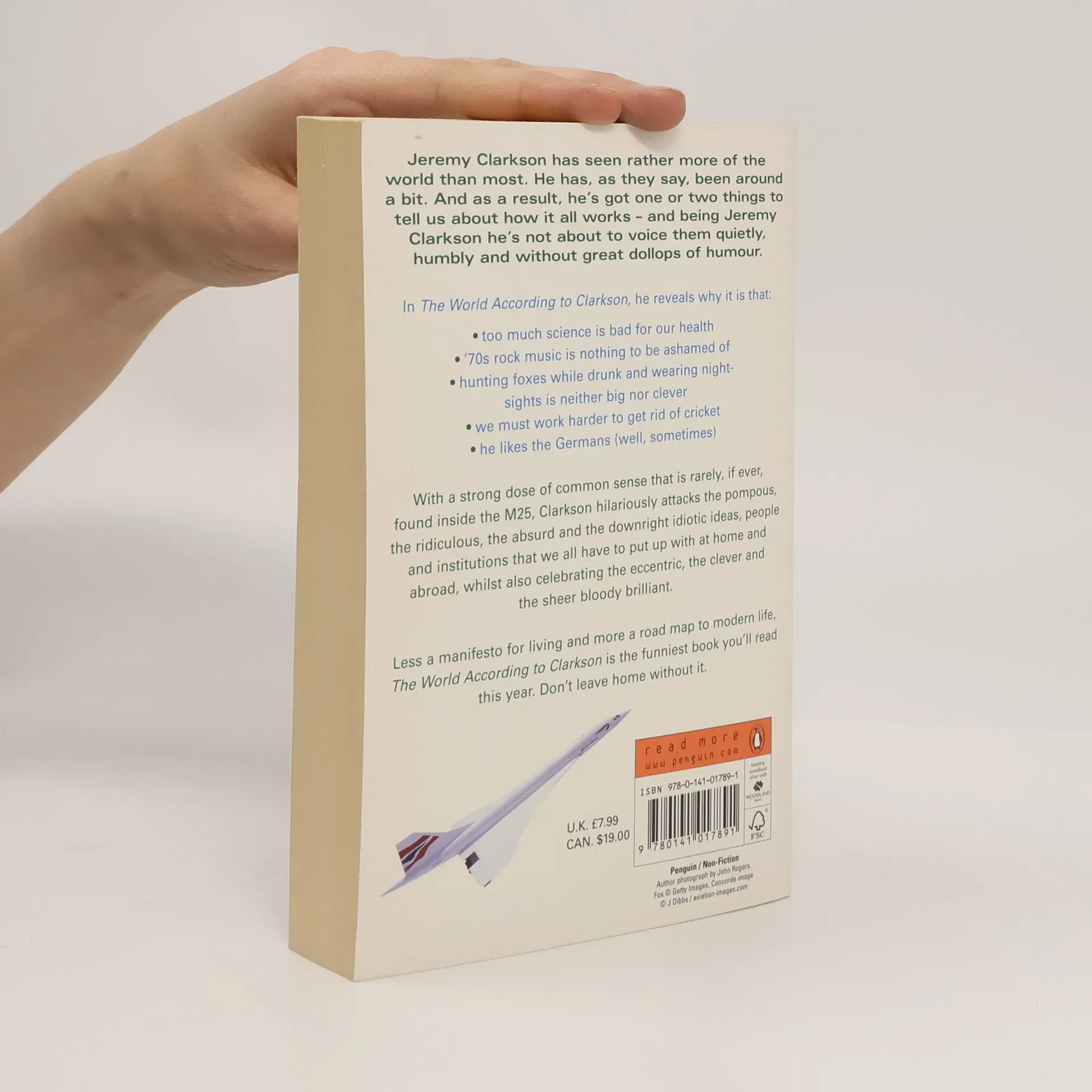Jeremy Clarkson shares his opinions on just about everything in The World According to Clarkson . Jeremy Clarkson has seen rather more of the world than most. He has, as they say, been around a bit. And as a result, he's got one or two things to tell us about how it all works; and being Jeremy Clarkson he's not about to voice them quietly, humbly, and without great dollops of humor. In The World According to Clarkson , he reveals why it is that too much science is bad for our health, 1970s rock music is nothing to be ashamed of, hunting foxes while drunk and wearing night-sights is neither big nor clever, we must work harder to get rid of cricket, and that he likes the Germans (well, sometimes). With a strong dose of common sense that is rarely, if ever, found inside the M25, Clarkson hilariously attacks the pompous, the ridiculous, the absurd, and the downright idiotic, while also celebrating the eccentric, the clever, and the sheer bloody brilliant. Less a manifesto for living and more a road map to modern life, The World According to Clarkson is the funniest book you'll read this year. Don't leave home without it. The World According to Clarkson is a hilarious collection of Jeremy's Sunday Times columns and the first in his The World According to Clarkson series which also includes And Another Thing ; For Crying Out Loud! and How Hard Can It Be?