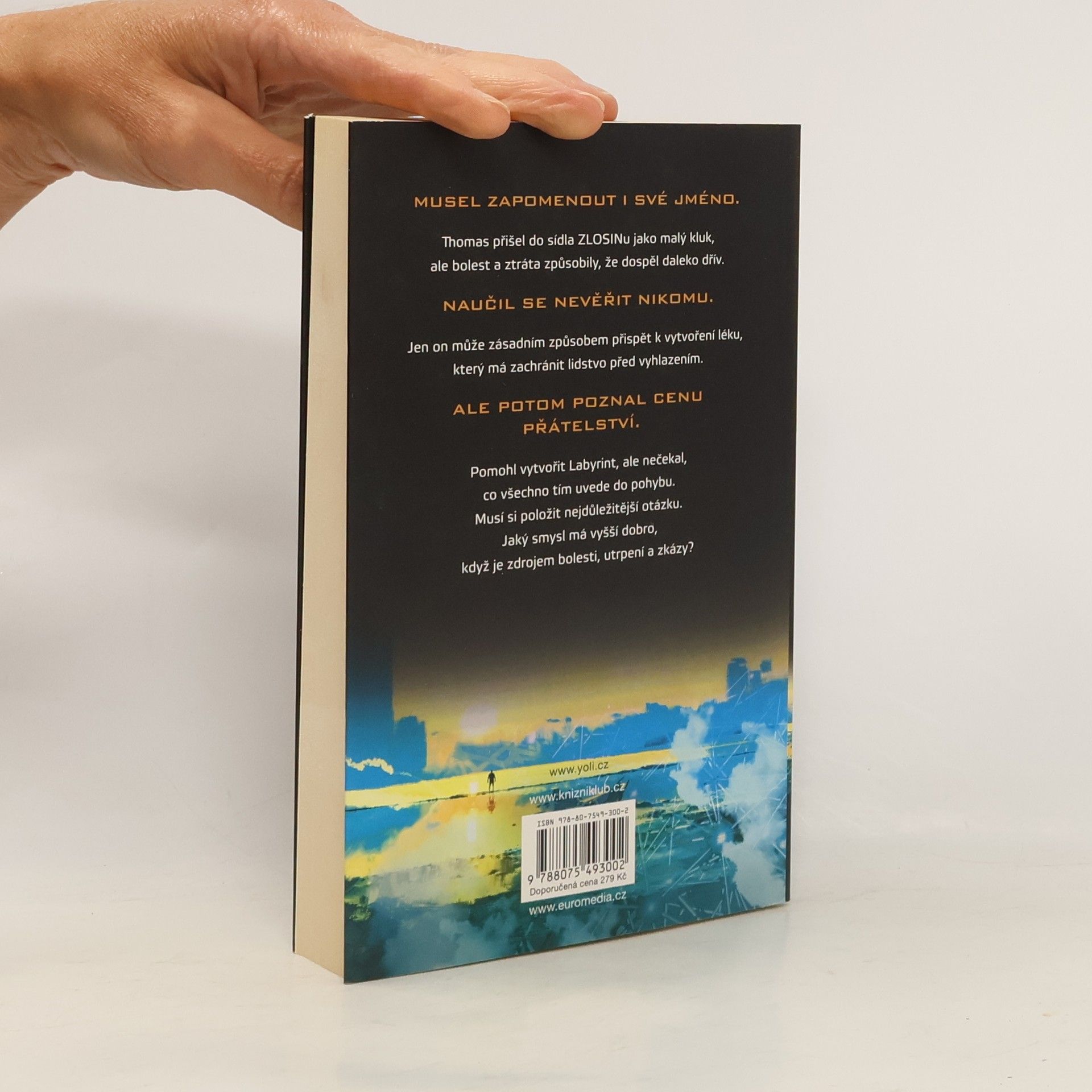 Druhý prequel celosvětově populární scifi série o Labyrintu. – Nastal konec světa. Lesy hořely, jezera a řeky vyschly, hladiny oceánů se zvýšily. Pak přišla epidemie, horečka, která zasáhla celou zeměkouli. Umíraly rodiny, vládlo násilí a člověk zabíjel člověka. Pak přišel ZLOSIN a pokusil se najít odpověď. A objevil dokonalého chlapce. Ten chlapec se jmenoval Thomas a postavil Labyrint. Existují tajemství. Existují lži. A existují pouta, která by historie nedokázala předpovědět. Toto je příběh toho chlapce, Thomase, a toho, jak vybudoval Labyrint, který mohl jako jediný strhnout. Všechny otázky budou zodpovězeny.