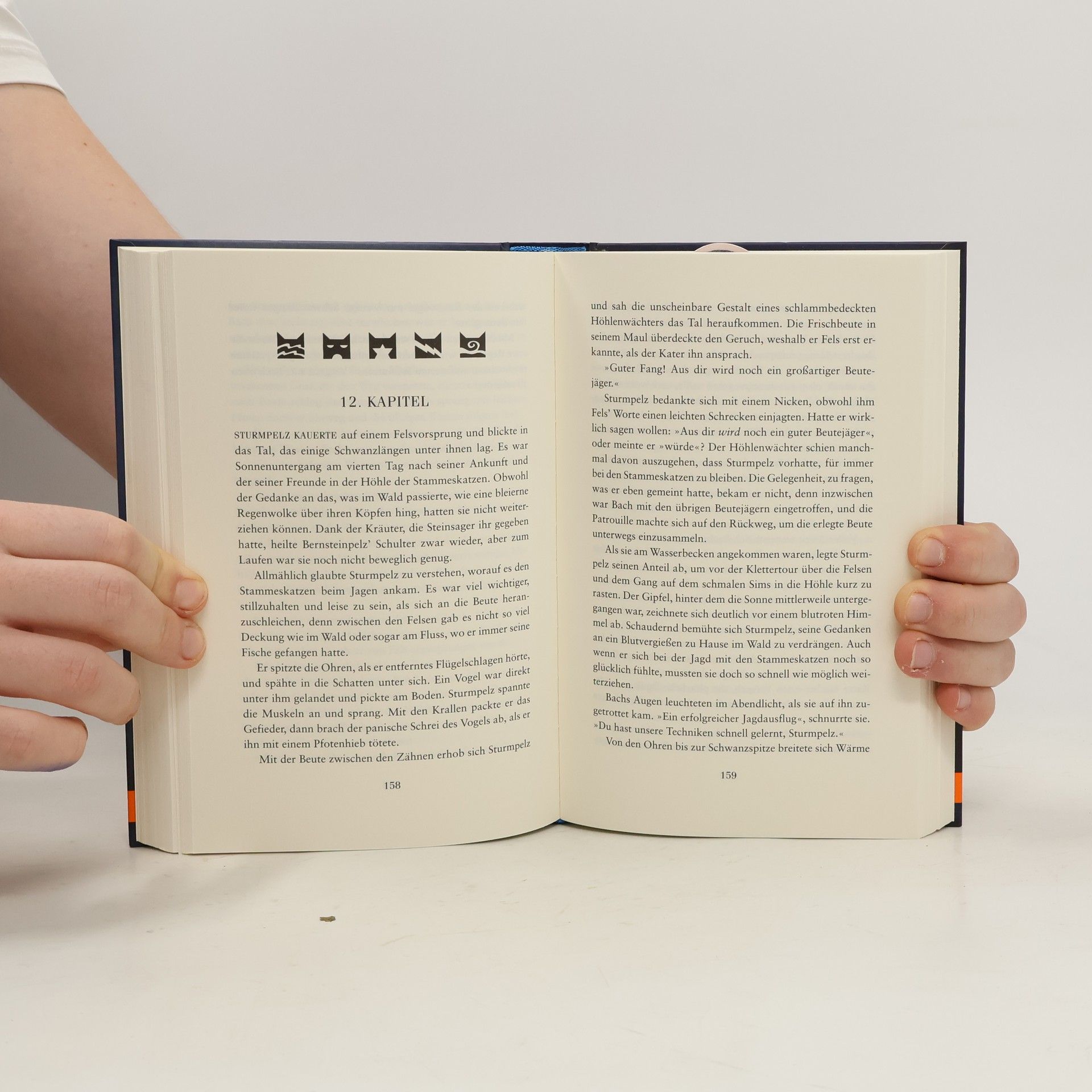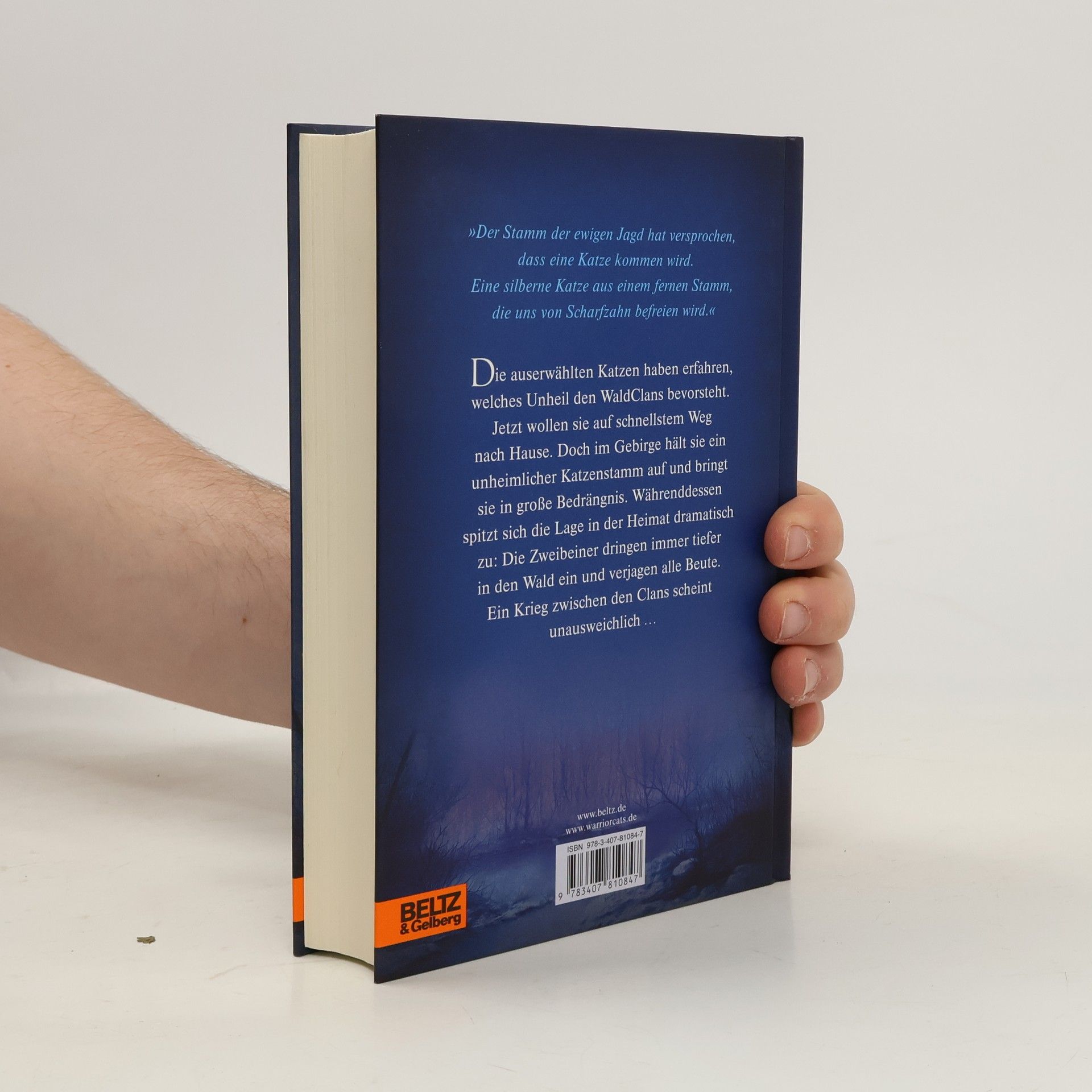 »Der Stamm der ewigen Jagd hat versprochen, dass eine Katze kommen wird. Eine silberne Katze aus einem fernen Stamm, die uns von Scharfzahn befreien wird.« Die auserwählten Katzen haben erfahren, welches Unheil den WaldClans bevorsteht. Jetzt wollen sie auf schnellstem Weg nach Hause. Doch im Gebirge hält sie ein unheimlicher Katzen-Stamm auf und bringt sie in große Bedrängnis. Währenddessen spitzt sich die Lage in der Heimat dramatisch zu: Die Zweibeiner dringen immer tiefer in den Wald ein und verjagen alle Beute. Ein Krieg zwischen den Clans scheint unausweichlich …