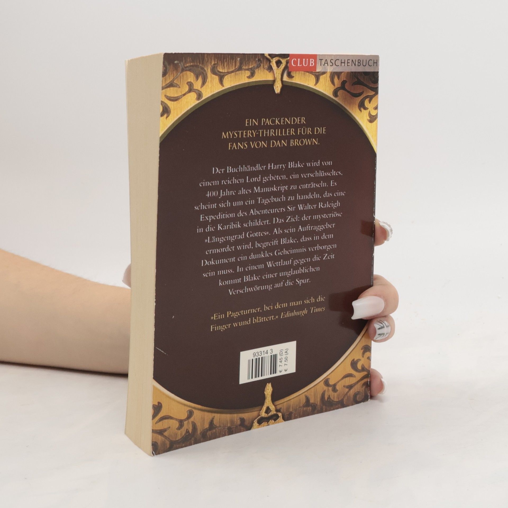 Der britische Buchhändler Harry Blake wird von einem reichen Lord gebeten, ein verschlüsseltes, 400 Jahre altes Manuskript zu enträtseln. Es scheint sich um ein Tagebuch zu handeln, verfasst von einem Schiffsjungen. 1585 begleitete dieser den Abenteurer Sir Walter Raleigh auf einer Expedition in die Karibik. Ihr Ziel: der 77. Grad, der Längengrad Gottes. Als sein Auftraggeber ermordet wird, begreift Blake, dass in dem mysteriösen Journal aus der Zeit von Königin Elisabeth I. ein dunkles Geheimnis verborgen sein muss. Gemeinsam mit der Historikerin Zola Khan deckt Blake eine unglaubliche Verschwörung auf ...