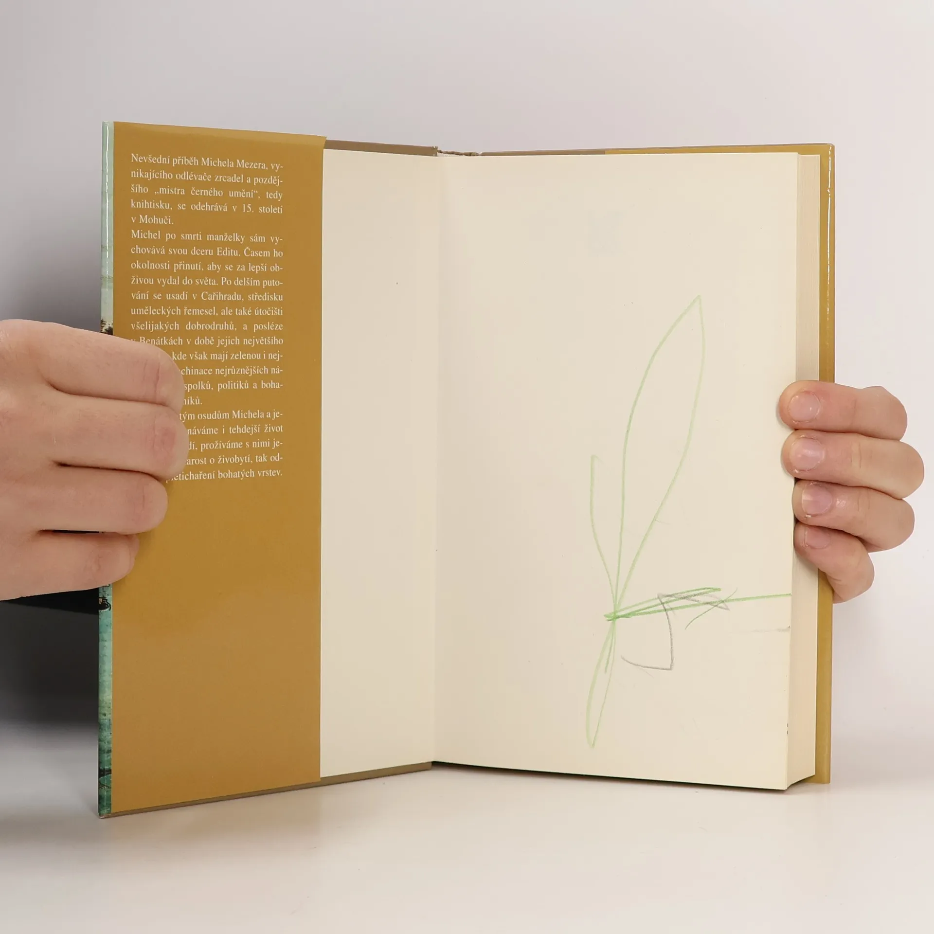 Nevšední příběh Michela Mezera, vynikajícího odlévače zrcadel a pozdějšího mistra černého umění, tedy knihtisku, se odehrává v 15. století v Mohuči. Michel po smrti manželky sám vychovává svou dceru Editu. Časem ho okolnosti přinutí, aby se za lepší obživou vydal do světa. Po delším putování se usadí v Cařihradu, středisku uměleckých řemesel, ale také útočišti všelijakých dobrodruhů a posléze v Benátkách v době jejich největšího rozkvětu, kde však mají zelenou i nejtemnější machinace nejrůznějších náboženských spolků, tehdejších politiků a bohatých obchodníků. Díky pohnutým osudům Michela a jeho dcery poznáváme tehdejší život i obyčejných lidí, prožíváme s nimi jejich lásky i starost o živobytí, tak odlišné od pletichaření bohatých vrstev.