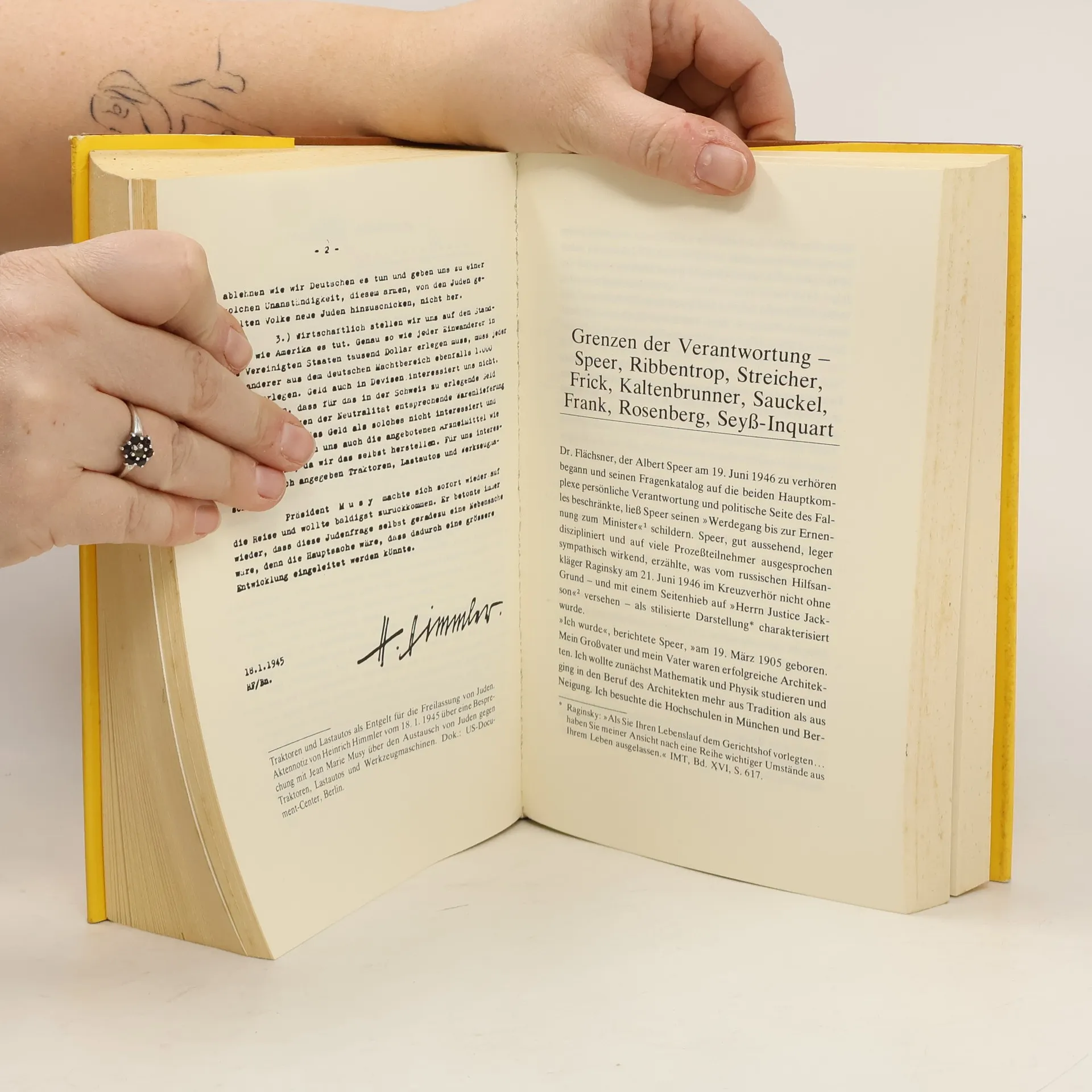 Tysk militærhistorie. Om Nürnberg-processerne med krigsforbryderdomstolene overfor de tyske nazister, i 1946, efter afslutningen af 2. Verdenskrig. Bogens kapiteloverskrifter: 1. Die Vorbereitungen der Sieger. 2. Aus dem Weg nach Nürnberg. 3. Das Gefängnis. 4. Der Prozes beginnt. 5. Rache oder Gerechtigkeit? 6. Das Beweismaterial. 7. Militärs im Kreuzverhör. 8. Karl Dönitz. 9. Verbrechen aus Gehorsam. 10. Grenzen der Verantwortung - Speer, Ribbentrop, Streicher, Frick, Kaltenbrunner, Sauckel, Frank, Rosenberg, Seys-Inquart. 11. Plädoyers und Schlusworte. 12. Da Urteil. 13. Nürnberg als historisches Ereignis.