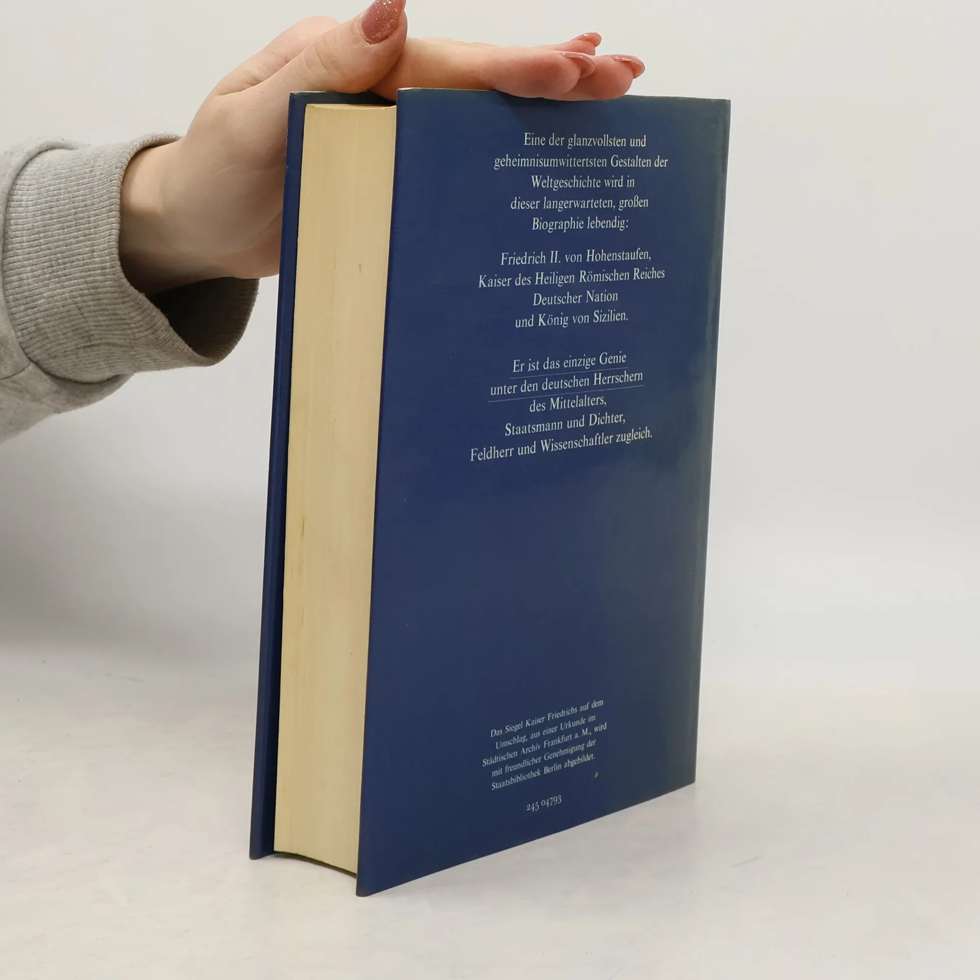 Friedrich II. von Hohenstaufen (1194-1250) war der letzte große Kaiser des Mittelalters. Als Mensch und Herrscher war er von allen der faszinierendste, das einzige Genie auf dem deutschen Kaiserthron.§Friedrich schuf das Modell eines modernen Staates, war Wegbereiter der Renaissance. Seine Intelligenz, seine staatsmännische Größe, sein Sinn für Wissenschaft und Kunst kennzeichnen ihn als absolute Ausnahmeerscheinung.