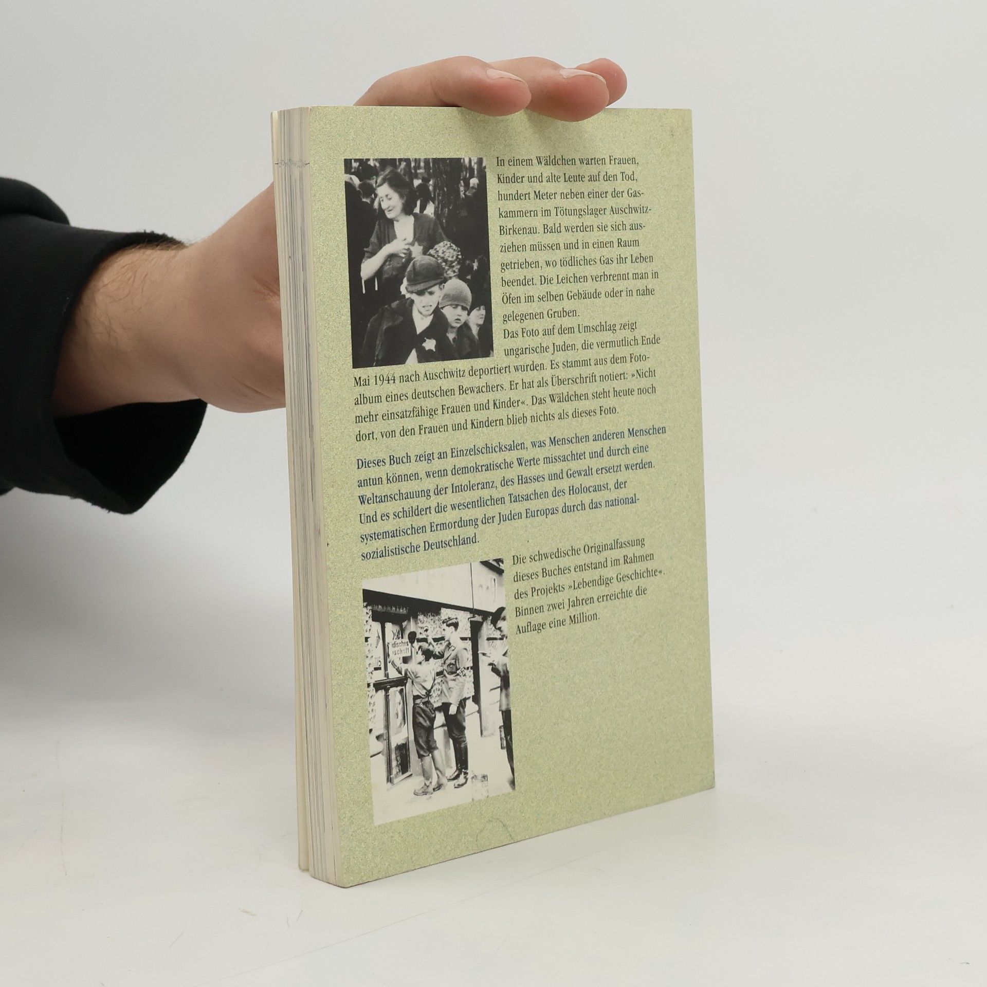 Das Thema Holocaust kann nur vermittelt werden, wenn historische Fakten und individuelle Schicksale betrachtet werden. Täter und Opfer haben Namen, Gesichter und Stimmen – sie sind Juden, Sinti und Roma, politische Regimegegner, Behinderte, Homosexuelle, ausländische Kriegsgefangene und Zivilisten. Dieses Buch bietet Eltern und Lehrern Materialien, um mit Kindern und Schülern über grundlegende menschliche und demokratische Werte zu sprechen. Es ist keine umfassende Darstellung des nationalsozialistischen Gewaltsystems, sondern liefert das notwendige Grundwissen, um ein Verständnis für dessen unfassbare Grausamkeit zu schaffen. Der Inhalt umfasst: Jüdisches Leben vor dem Krieg, das System des Massenmords, rassistisches Denken, die Verfolgung, Widerstand und Befreiung, Mitwissen und Wegsehen, das Leben in den Ghettos, die Deportationen in Europa sowie eine Literaturliste mit weiterführender Sachliteratur und Leseempfehlungen. Das Buch wurde 1997 im Auftrag des schwedischen Ministerpräsidenten Göran Persson verfasst, nachdem eine Studie ergab, dass Schüler und Eltern in Schweden wenig über den Holocaust wussten. Der Ministerpräsident initiierte das Projekt Levande Historia, um die Werte des Humanismus und der Demokratie zu fördern, insbesondere in Bezug auf die Jugend, Eltern, Schulen und Universitäten.
