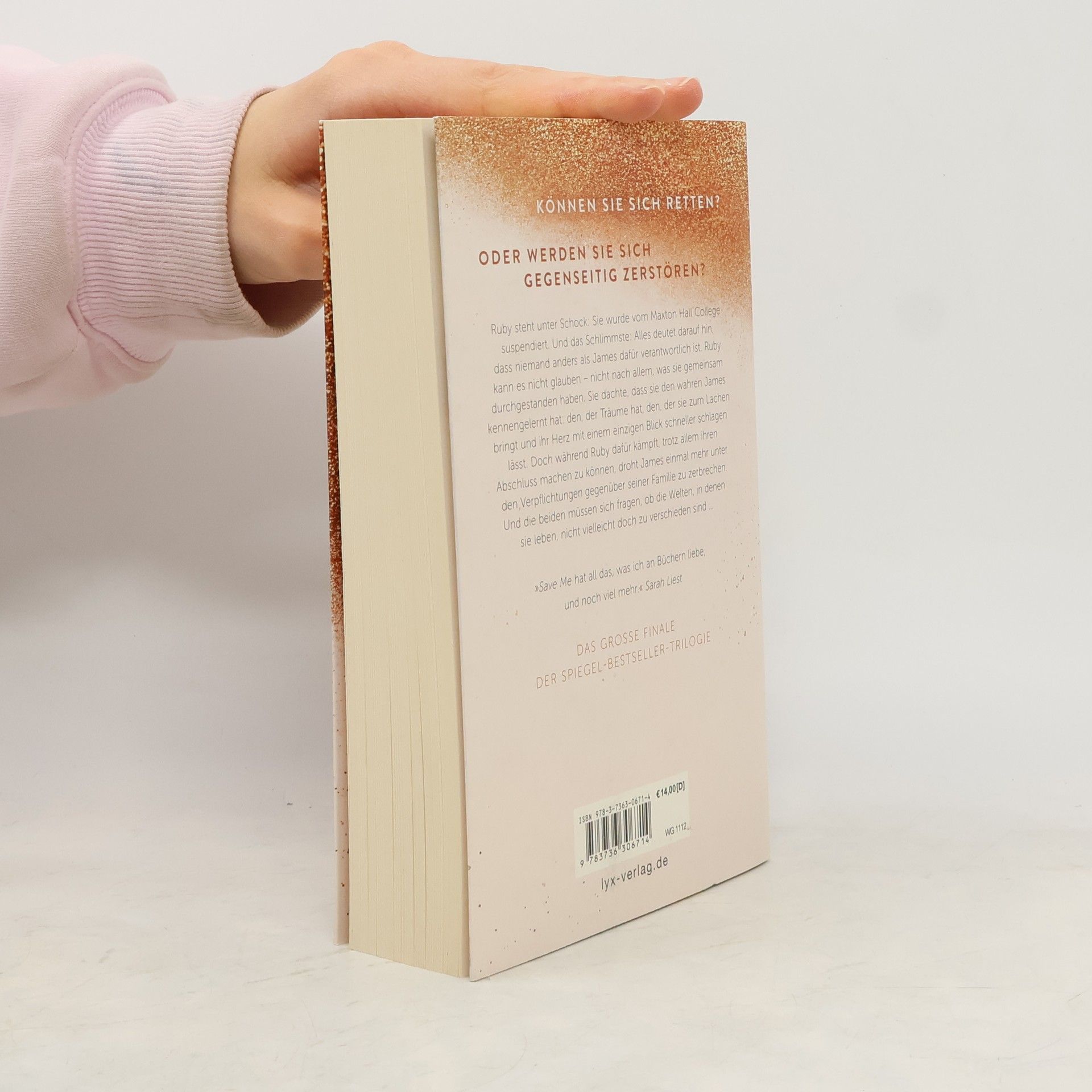 Können sie sich retten? Oder werden sie sich gegenseitig zerstören? Ruby steht unter Schock: Sie wurde vom Maxton-Hall-College suspendiert. Und das Schlimmste: Alles deutet darauf hin, dass niemand anders als James dafür verantwortlich ist. Ruby kann es nicht glauben - nicht nach allem, was sie gemeinsam durchgestanden haben. Sie dachte, dass sie den wahren James kennengelernt hat: den, der Träume hat, den, der sie zum Lachen bringt und ihr Herz mit einem einzigen Blick schneller schlagen lässt. Doch während Ruby dafür kämpft, trotz allem ihren Abschluss machen zu können, droht James einmal mehr unter den Verpflichtungen gegenüber seiner Familie zu zerbrechen. Und die beiden müssen sich fragen, ob die Welten, in denen sie leben, nicht vielleicht doch zu verschieden sind ... „ Save Me hat all das, was ich an Büchern liebe, und noch viel mehr.“ Sarah-liest „Gefühlvoll, mitreißend, voller Liebe.“ Nichtohnebuch Das große Finale der mitreißenden Liebesgeschichte von Ruby und James!