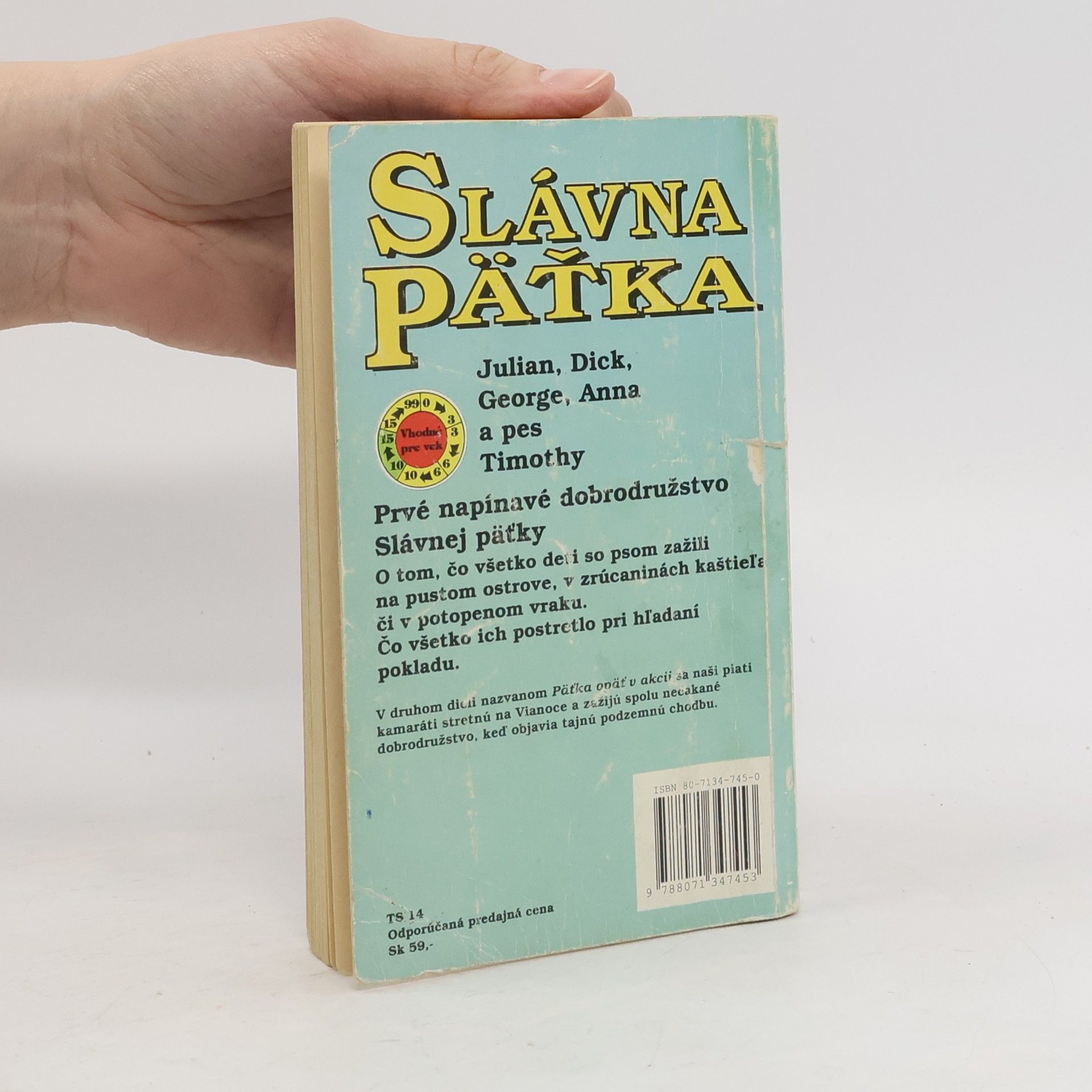 Prvé napínavé dobrodružstvo Slávnej päťky Slávna päťka, to sú v skutočnosti štyri deti a pes. Julian, Dick, George, či vlastne Georgina, Anna a pes Timothy. Čo všetko zažili na pustom ostrove? Aké dobrodružstvo ich postretlo pri plavbe na mori či v noci v zrúcanine starého hradu? Čo objavili v starom potopenom vraku? A ako vyzerá ozajstné hľadanie pokladu? Vhodné pre vek: 10 - 15 rokov Druhé vydanie... celý text