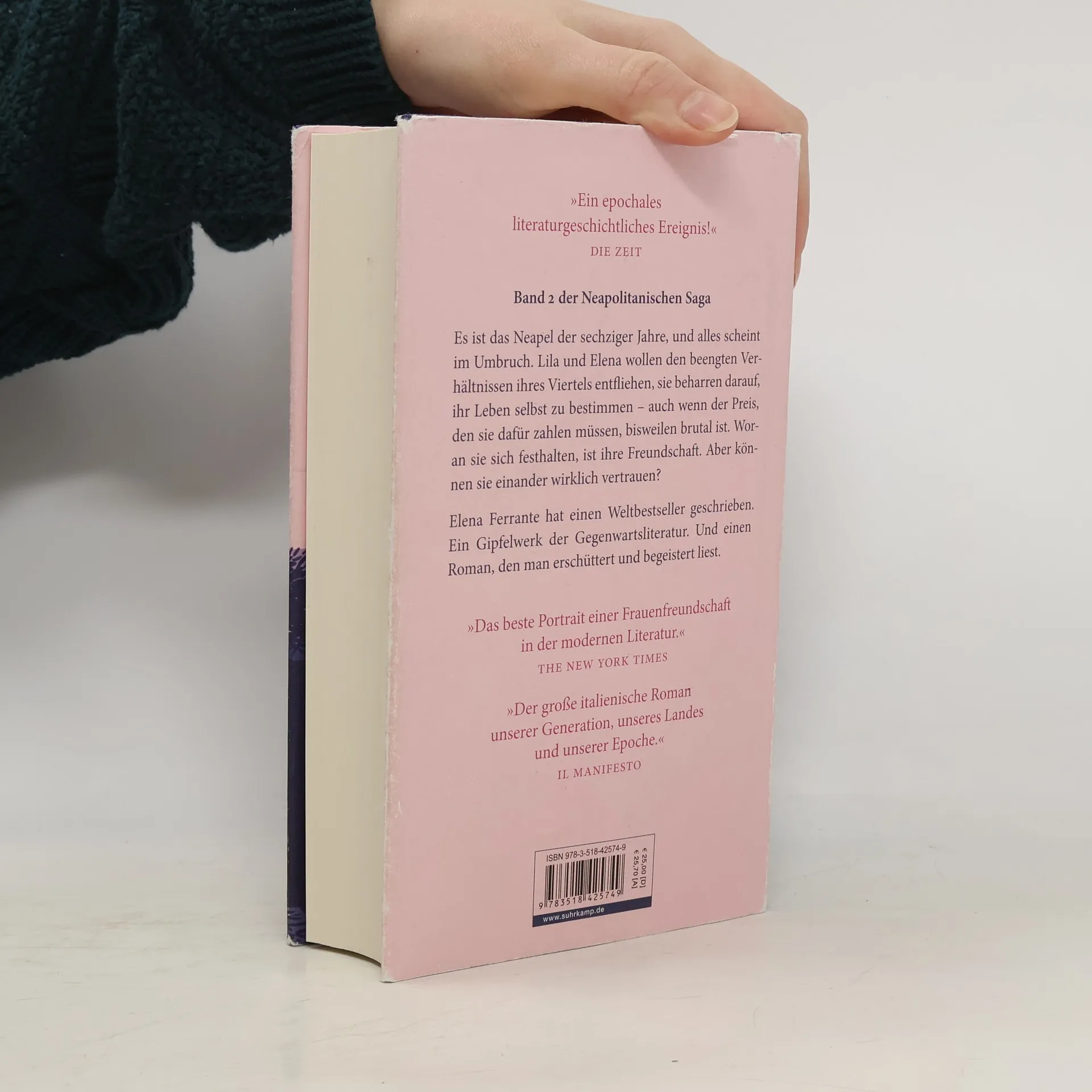 Lila und Elena sind sechzehn Jahre alt, und sie sind verzweifelt. Lila hat noch am Tage ihrer Hochzeit erfahren, dass ihr Mann sie hintergeht – er macht Geschäfte mit den allseits verhassten Solara-Brüdern, den lokalen Camorristi. Für Lila, arm geboren und durch die Ehe schlagartig zu Geld und Ansehen gekommen, brechen leidvolle Zeiten an. Elena hingegen verliebt sich Hals über Kopf in einen jungen Studenten, doch der scheint nur mit ihren Gefühlen zu spielen. Sie ist eine regelrechte Vorzeigeschülerin geworden, muss aber feststellen, dass das, was sie sich mühsam erarbeitet hat, in ihrer neapolitanischen Welt kaum etwas gilt. Trotz all dieser Widrigkeiten beharren Lila und Elena immer weiter darauf, ihr Leben selbst zu bestimmen, auch wenn der Preis, den sie dafür zahlen müssen, bisweilen brutal ist. Woran die beiden jungen Frauen sich festhalten, ist ihre Freundschaft. Aber können sie einander wirklich vertrauen? Elena Ferrante hat einen Weltbestseller geschrieben. Ein Gipfelwerk der zeitgenössischen Literatur. Und einen Roman, den man erschüttert und begeistert liest!