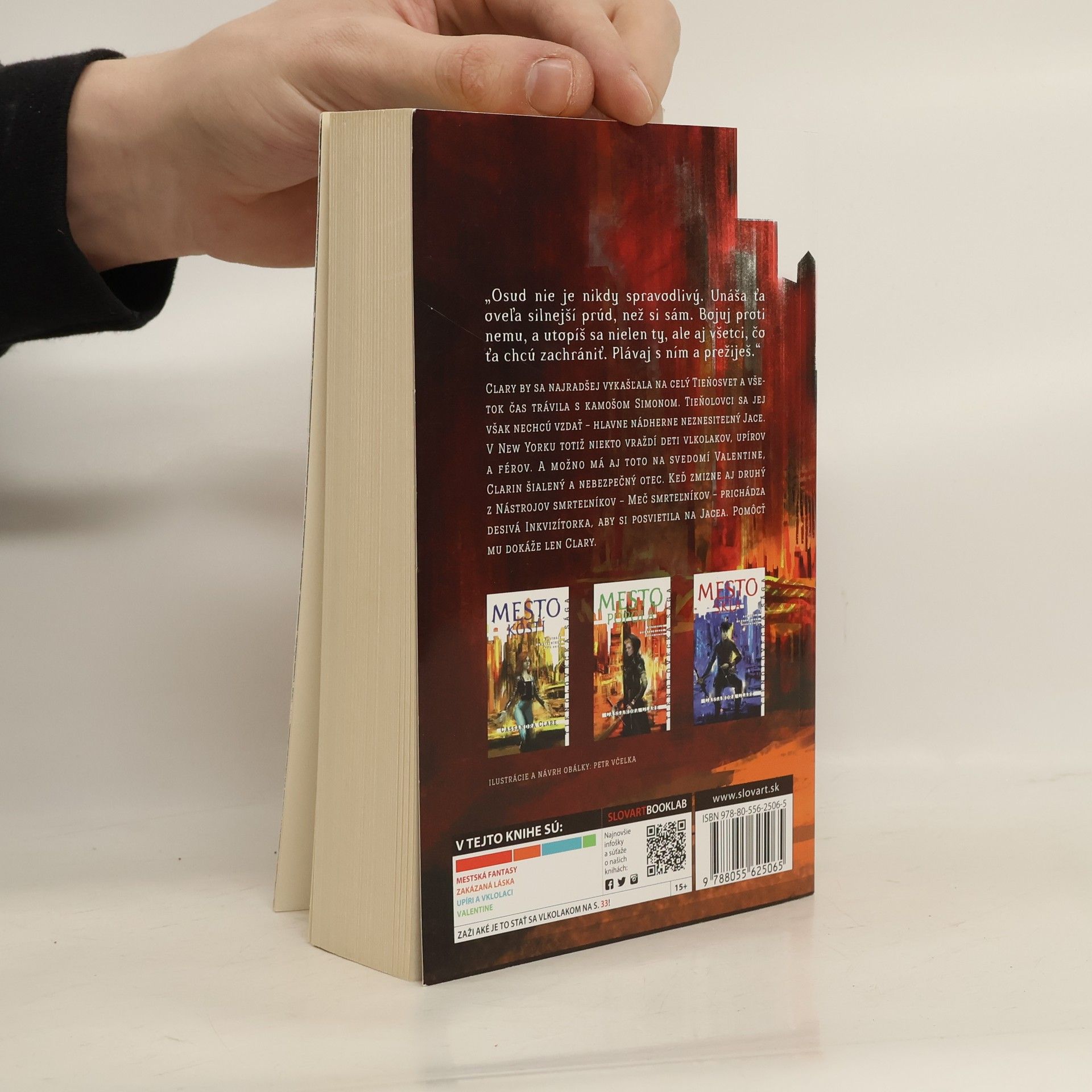 Najobľúbenejšia mestská fantasy súčasnosti je Tieňolovecká sága! A preto vám prinášame prvé tri diely série Nástroje smrteľníkov s novými obálkami od nášho ilustrátora Petra Včelku. Clary Frayová by bola najradšej, keby sa všetko vrátilo do normálu. Ale čo je vlastne normál, keď nedávno zistila, že je Tieňolovkyňa, čo má zbavovať náš svet démonov, jej mama je v čarami vyvolanej kóme a Clary nemá pred zrakom skrytý Tieňosvet, čiže vidí všetkých vlkolakov, upírov a aj férov! Clary sa snaží zachrániť mamu, no musí sa postaviť zoči-voči svojej minulosti aj budúcnosti a odolávať chlapcovi, s ktorým nemôže nikdy byť...