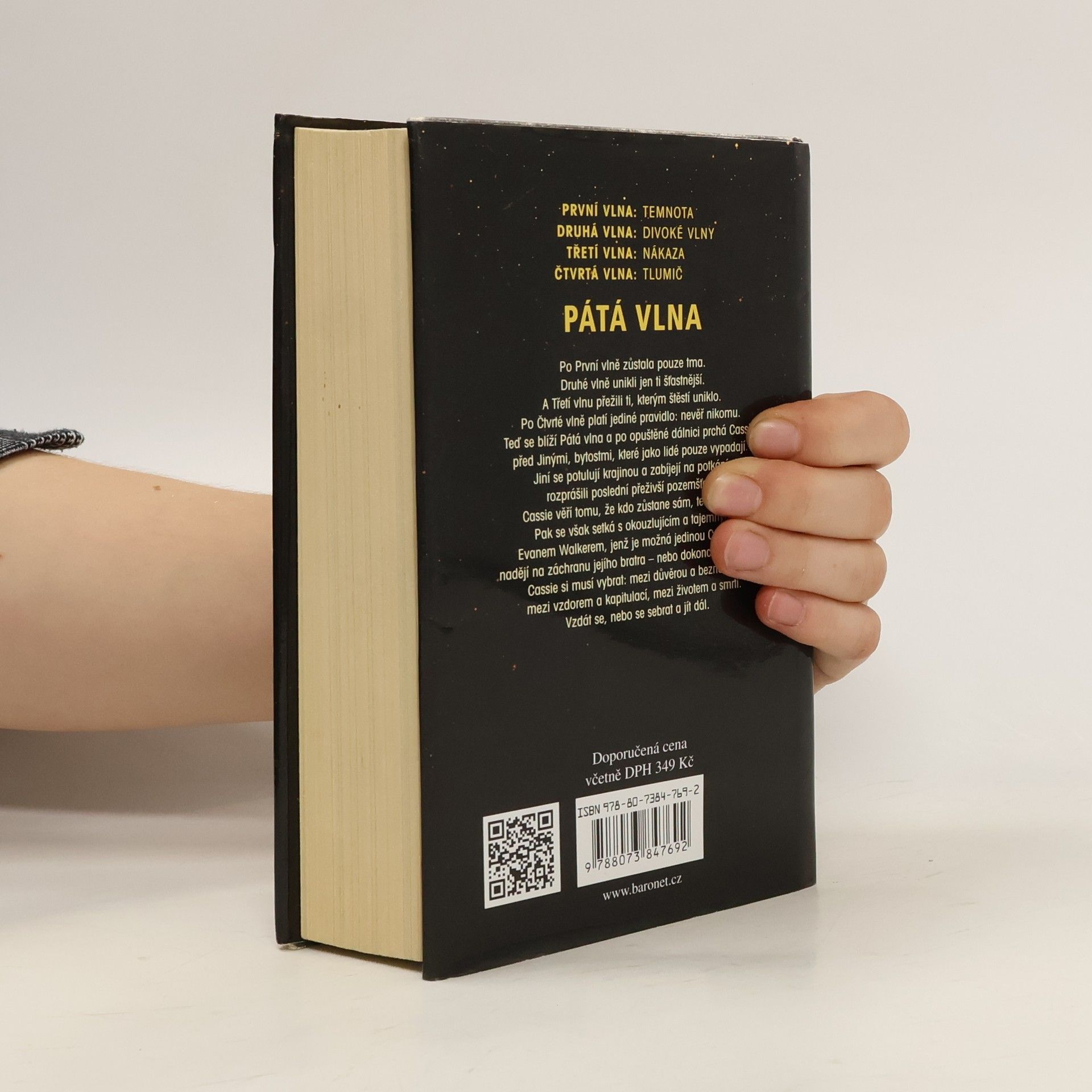 Po první vlně zůstala pouze tma. Druhé vlně unikli jen ti šťastnější. A třetí vlnu přežili ti, kterým štěstí uniklo. Po čtvrté vlně platí jediné pravidlo: nevěř nikomu. Teď se blíží vlna pátá a po opuštěné dálnici prchá Cassie před Jinými, bytostmi, které jako lidé pouze vypadají. Jiní se potulují krajinou a zabíjejí na potkání; rozprášili poslední přeživší pozemšťany. Cassie věří tomu, že kdo zůstane sám, ten přežije. Pak se však setká s okouzlujícím a tajemným Evanem Walkerem, jenž je možná jedinou Cassiinou nadějí na záchranu jejího bratra – nebo dokonce jí samotné. Cassie si musí vybrat: mezi důvěrou a beznadějí, mezi vzdorem a kapitulací, mezi životem a smrtí. Vzdát se, nebo se sebrat a jít dál.