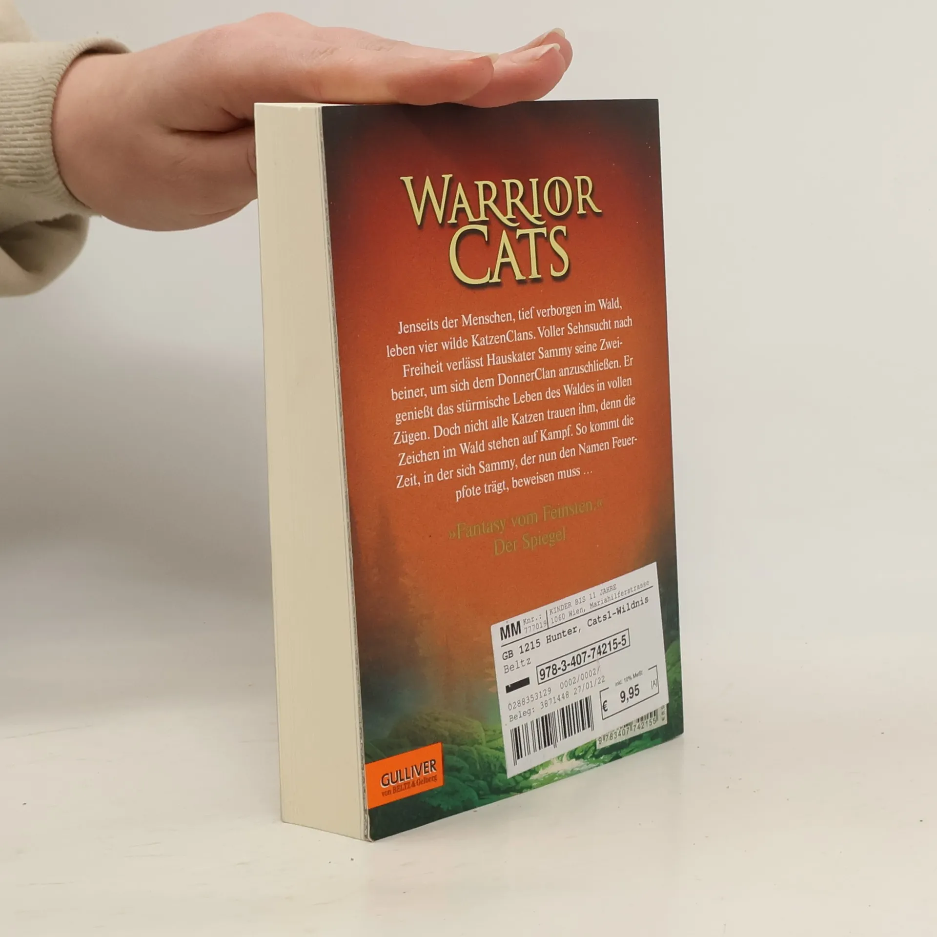 Ein Wald. Vier Clans. Und alle wollen überleben. Jenseits der Menschen, tief verborgen im Wald, leben die Katzen der Clans wild und ungezähmt. Feuerpfote, der seine Zweibeiner verließ, um sich dem DonnerClan anzuschließen, genießt das stürmische Leben des Waldes in vollen Zügen. Seite an Seite mit den wilden Katzen lernt er zu jagen, seine Instinkte zu gebrauchen, er lernt den Wald zu hören und seine Feinde zu riechen. Doch das Leben stellt ihn auch immer wieder auf die Probe, denn der Platz ist eng, das Futter knapp. Blaustern, die Anführerin des DonnerClans, hat Zweifel, ob es der Clan schaffen wird, bis zur Blattfrische zu überleben. Da erfährt Feuerpfote von der Prophezeiung: „Nur Feuer kann den Clan retten!“ Was hat diese Prophezeiung zu bedeuten?