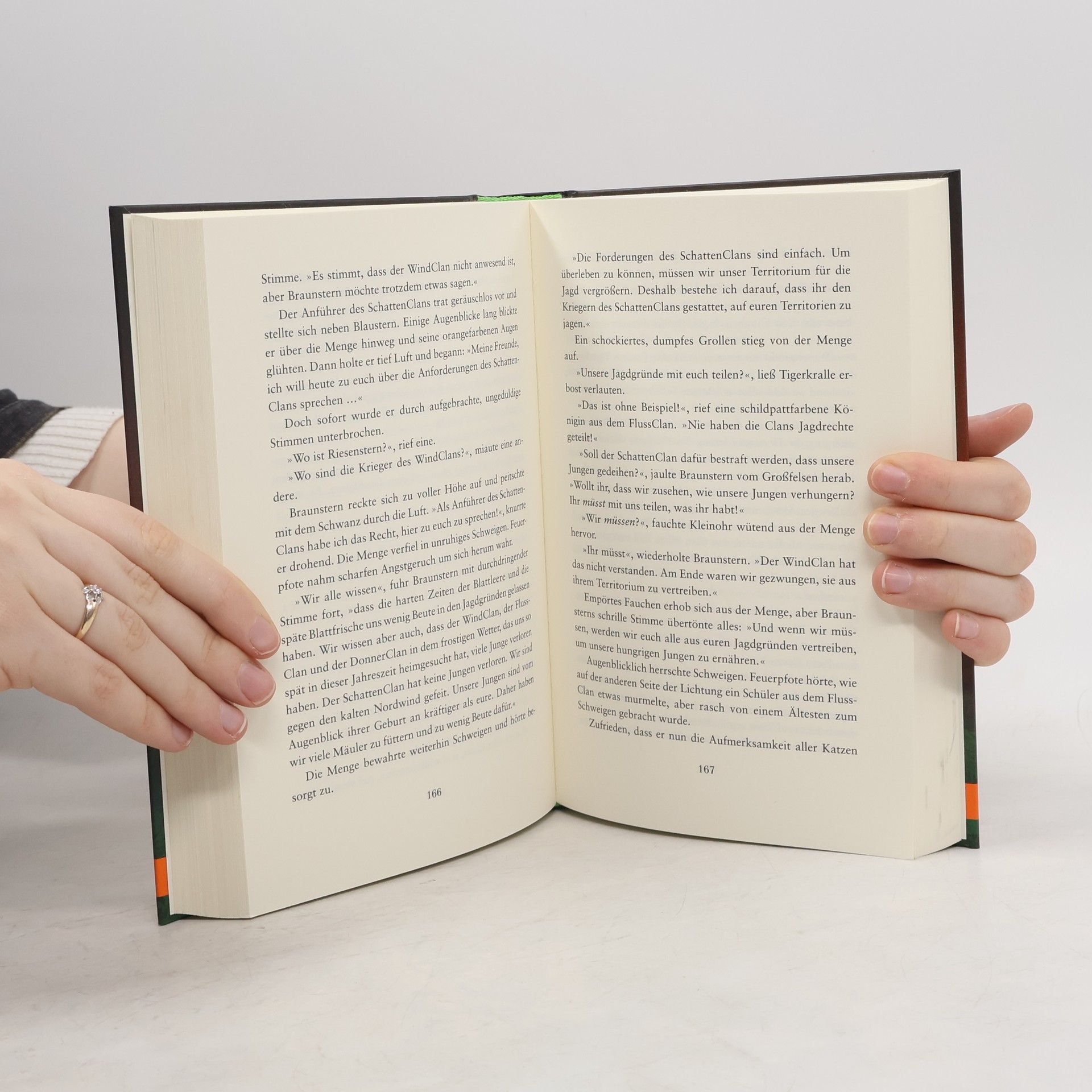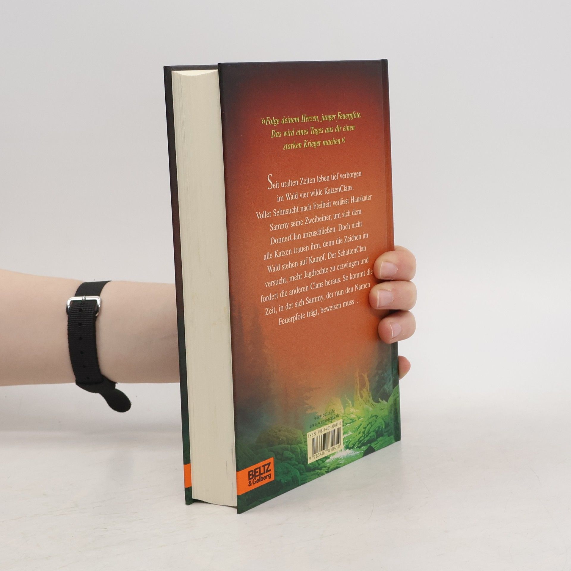 Ein Wald. Vier Clans. Und alle wollen überleben. Jenseits der Menschen, tief verborgen im Wald, leben die Katzen der Clans wild und ungezähmt. Feuerpfote, der seine Zweibeiner verließ, um sich dem DonnerClan anzuschließen, genießt das stürmische Leben des Waldes in vollen Zügen. Seite an Seite mit den wilden Katzen lernt er zu jagen, seine Instinkte zu gebrauchen, er lernt den Wald zu hören und seine Feinde zu riechen. Doch das Leben stellt ihn auch immer wieder auf die Probe, denn der Platz ist eng, das Futter knapp. Blaustern, die Königin des DonnerClans, hat Zweifel, ob es der Clan schaffen wird, bis zur Blattfrische zu überleben. Da erfährt Feuerpfote von der Prophezeiung: „Nur Feuer kann den Clan retten!“ Was hat diese Prophezeiung zu bedeuten?