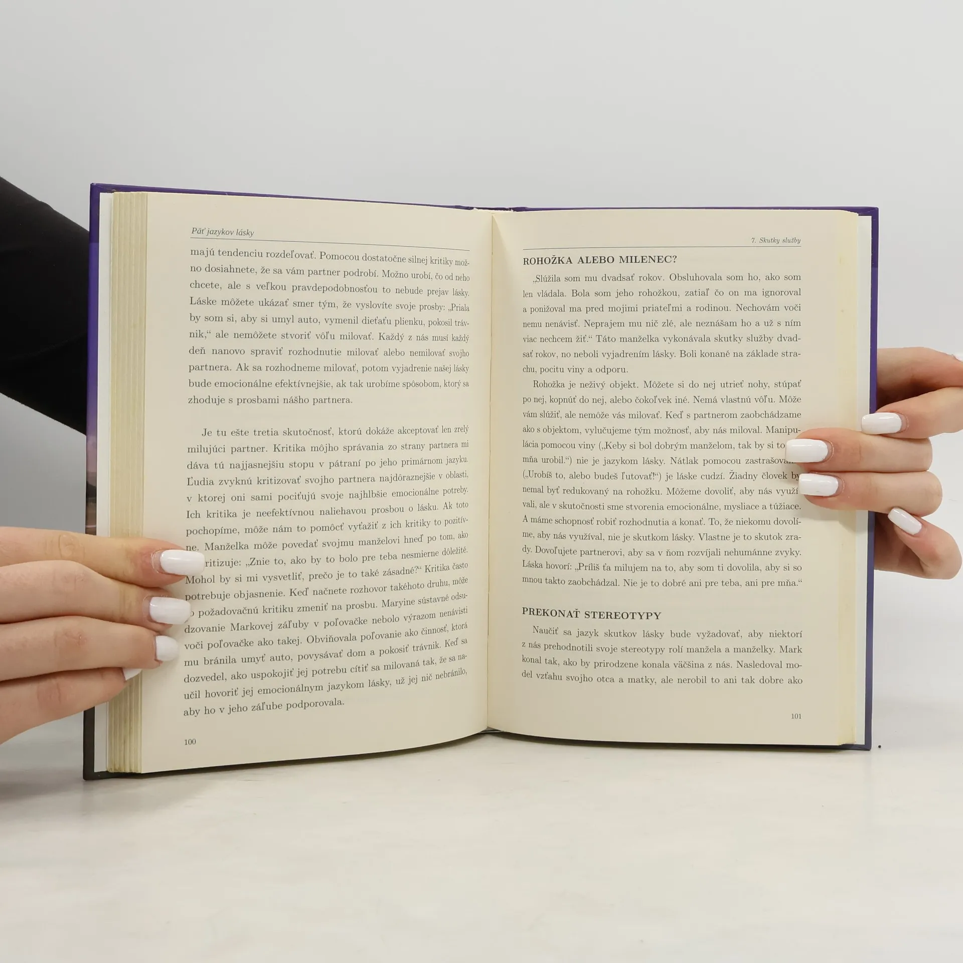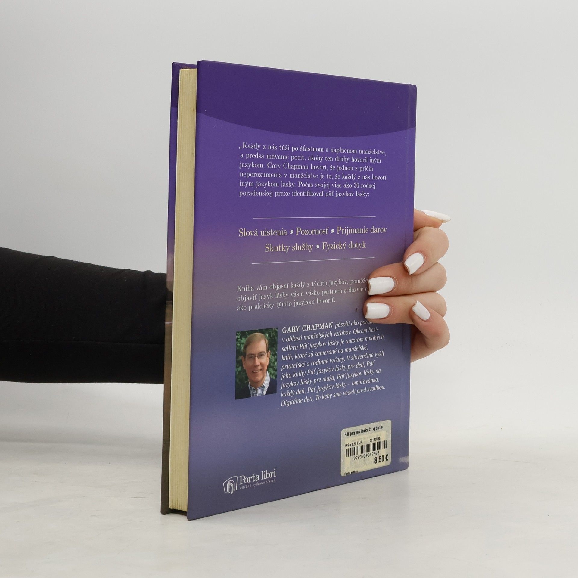 Gary Chapman hovorí, že jednou z príčin neporozumenia v manželstve je to, že každý z nás hovorí iným jazykom lásky. Počas svojej viac ako 30-ročnej poradenskej praxe identifikoval päť jazykov lásky: * Slová uistenia, * Pozornosť, * Prijímanie darov, * Skutky služby, * Fyzický dotyk. Niekto túži po pozornosti, iný po pochvale; pre niekoho sú veľmi dôležité darčeky, pre ďalšieho vymenená žiarovka či ožehlená košeľa a zas iný potrebuje fyzický dotyk. Kniha vám objasní každý z týchto jazykov, pomôže vám objaviť jazyk lásky vás a vášho partnera a dozviete sa aj, ako prakticky týmto jazykom hovoriť. Cieľom tejto knihy nie je vyjasniť zmätok ohľadne slov láska či milovať, ale zamerať sa na prejavy lásky, ktorá je nevyhnutná pre naše emocionálne zdravie. Keď identifikujeme a naučíme sa hovoriť jazykom lásky nášho partnera, objavili sme kľúč k dlhotrvajúcemu, milujúcemu manželskému vzťahu. Láska sa po svadbe nemusí vypariť, no aby sme ju udržiavali živú, potrebujeme zapracovať na tom, aby sme sa naučili hovoriť jazykom lásky nášho partnera. Nemôžeme si vystačiť s naším vlastným jazykom, ak mu nerozumie. Ak chceme, aby rozumel prejavom našej lásky a cítil ju, musíme ju prejavovať v jeho jazyku.