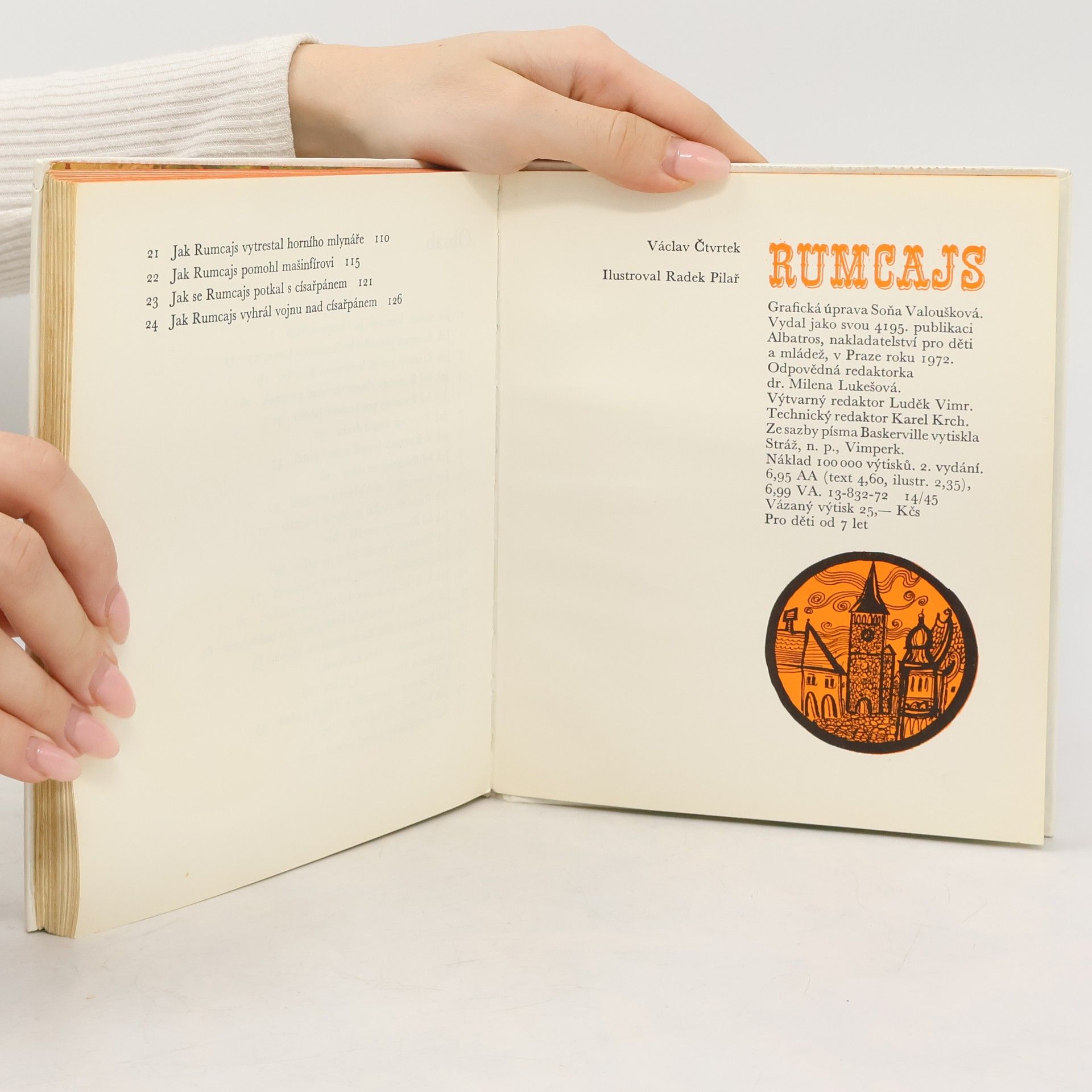 Pohádkové příběhy o loupežníku Rumcajsovi - jedné z nejznámějších postav Václava Čtvrtka a ilustrátora Radka Pilaře, kterou děti dobře znají i z televize. Rumcajs je prvním z dílů známé trilogie Rumcajs - Manka - Cipísek. V prvním díle se děti dozvědí, jak se stal Rumcajs loupežníkem, jak utopil draka, jak vysadil duhu na nebe a ještě mnoho krásných příběhů.