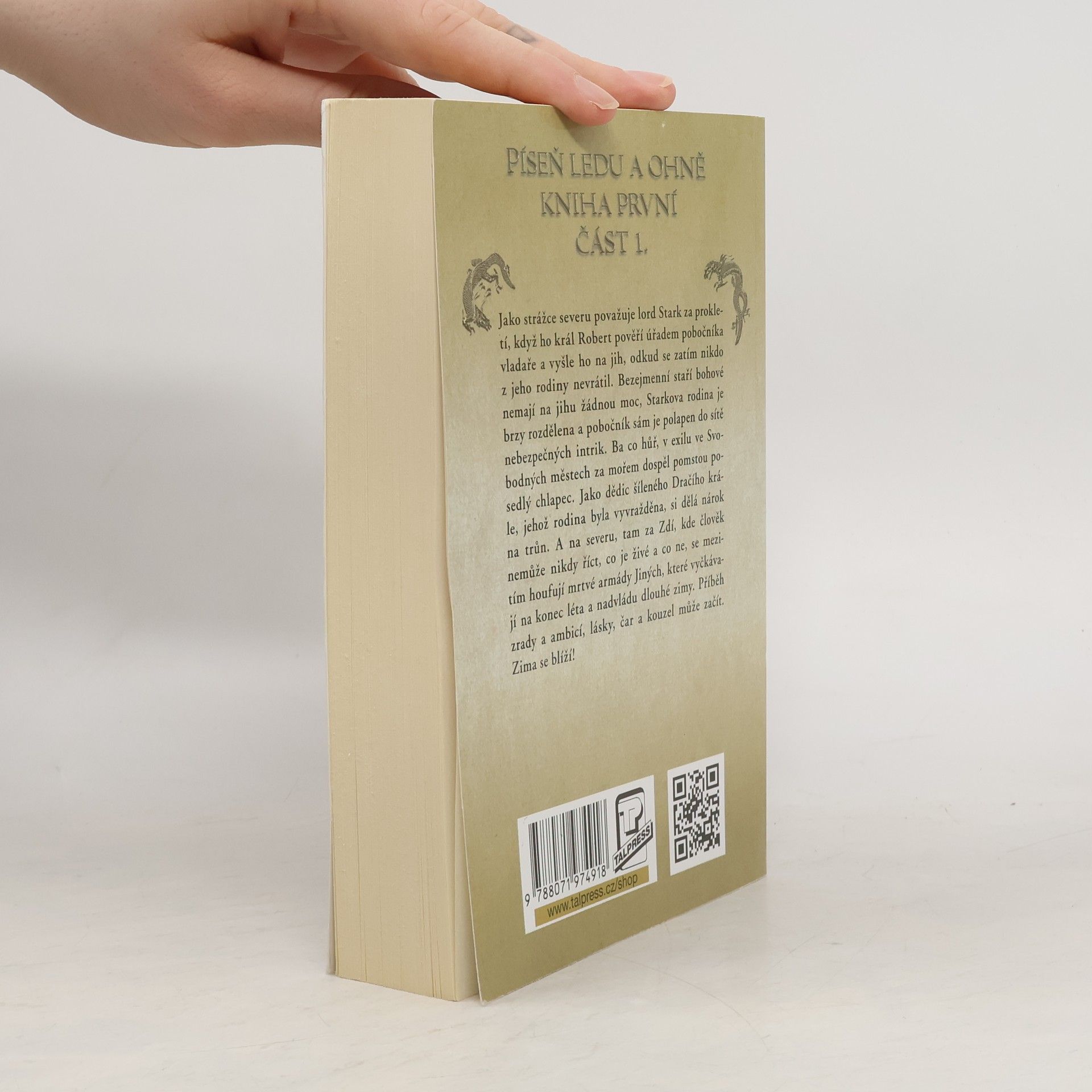 Úvodní část epického fantasy eposu odehrávajícího se ve světě temného středověku, mezi statečnými rytíři, mocnými čaroději, draky, zlovlky a čarostromy… Jako strážce severu lord Stark považuje za prokletí, když ho král Robert pověří úřadem pobočníka vladaře a vyšle ho na jih, odkud se zatím nikdo z jeho rodiny nevrátil. Bezejmenní staří bohové nemají na jihu žádnou moc, Starkova rodina je brzy rozdělena a pobočník sám je polapen do sítě nebezpečných intrik. Ba co hůř, v exilu ve Svobodných městech za mořem dospěl pomstou posedlý chlapec. Jako dědic šíleného Dračího krále, jehož rodina byla vyvražděna, si dělá nárok na trůn. A na severu, tam za Zdí, kde člověk nemůže nikdy říct, co je živé a co ne, se mezitím houfují mrtvé armády Jiných, které vyčkávají na konec léta a nadvládu dlouhé zimy. Příběh zrady a ambicí, lásky, čar a kouzel může začít. 2. vydání.