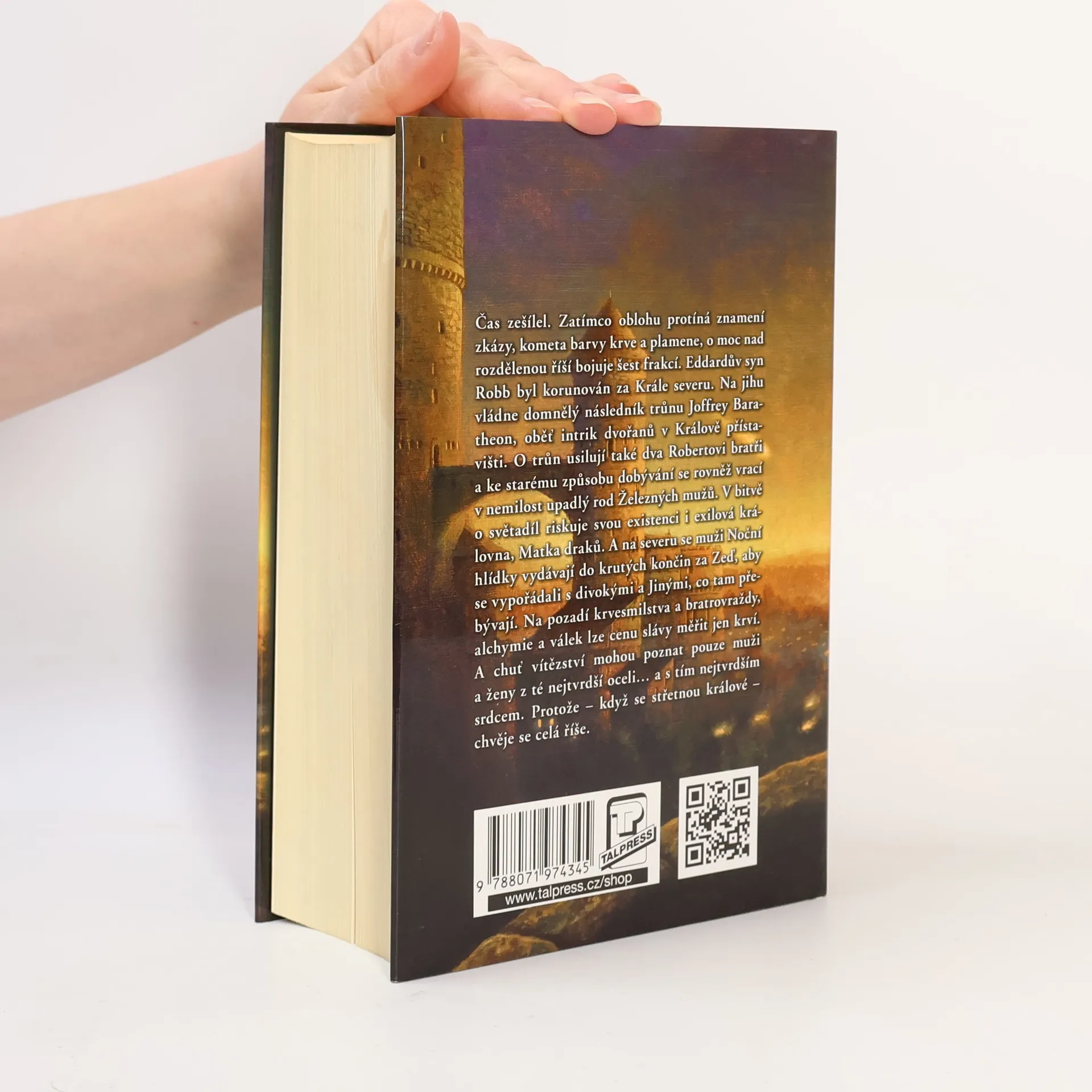 Čas zešílel. Deset let dlouhé léto pokoje a hojnosti se blíží ke konci, a jako zuřivá bestie se neodvratně blíží krutá, mrazivá zima. Dva mocní muži – král Robert Baratheon a lord Eddard Stark –, kteří třímali žezlo moci v časech nuceného míru, jsou mrtví. Zatímco oblohu protíná znamení zkázy – kometa barvy krve a plamene –, o moc nad rozdělenou říší bojuje šest frakcí. Eddarův syn Robb byl korunován za Krále severu. Na jihu vládne domnělý následník trůnu Joffrey Baratheon, oběť intrik dvořanů v Králově přístavišti. O trůn usilují také dva Robertovi bratři a ke starému způsobu dobývání se rovněž vrací v nemilost upadlý rod Železných mužů. V bitvě o světadíl riskuje svou existenci i exilová královna, Matka draků. A na severu se muži Noční hlídky vydávají do krutých končin za Zeď, aby se vypořádali s divokými a Jinými, co tam přebývají. Na pozadí krvesmilstva a bratrovraždy, alchymie a válek lze cenu slávy měřit jen krví. A chuť vítězství mohou poznat pouze muži a ženy z té nejtvrdší oceli… a s tím nejtvrdším srdcem. Protože – když se střetnou králové, chvěje se celá říše.