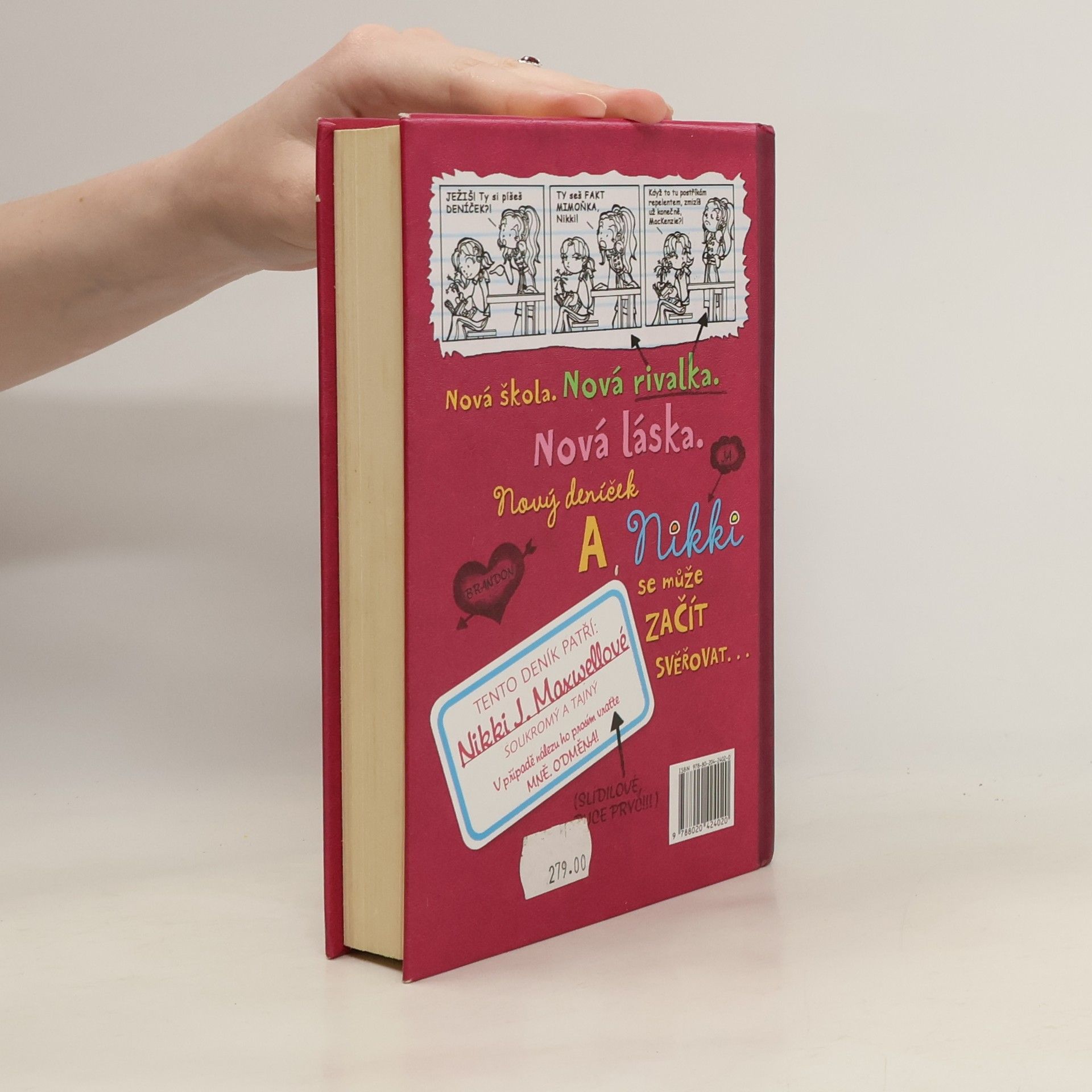 Nestačí, že Nikki J. Maxwellová má otce, který se živí hubením brouků. Ještě se kvůli tomu dostane do prestižní soukromé školy, kam moc nezapadá. Z pohledu její zapřisáhlé nepřítelkyně MacKenzie, dokonalé dívky, která má vše, co je třeba, je Nikki prostě „mimoňka“. A toto je její deník. Zachycující příhody každodenního života, například jak si chtěla z naslouchátka vyrobit luxusní hands-free, jak se snažila sbalit nejhezčího kluka a co zažívala se svými novými kamarádkami, Chloe a Zoey. Doplněno výstižnými ilustracemi. První vydání.