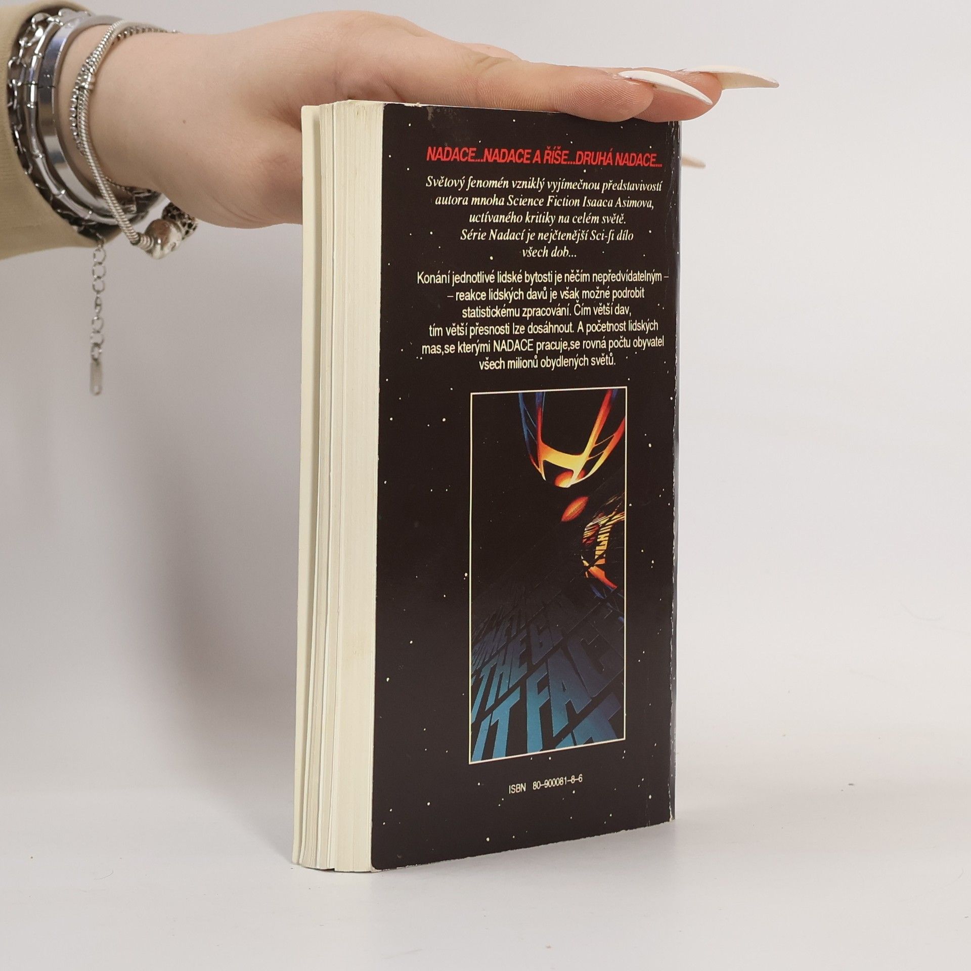 Anotace: Třetí román série Nadace. Konání jednotlivé lidské bytosti je něčím nepředvídatelným – reakce lidských davů je však možné podrobit statistickému zpracování. Čím větší dav, tím větší přesnosti lze dosáhnout. A početnost lidských mas, se kterými Nadace pracuje, se rovná počtu obyvatel všech miliónů obydlených světů. Seldonův plán leží v troskách – a s ním i impérium Nadace. Na Mezka, mutanta netušených psychických schopností, nestačily ani rovnice nejnadanějšího matematika všech dob. Vše však ještě není ztraceno: kdesi na druhém konci Galaxie se skrývá Drahá Nadace, v níž se i přes dlouhá století barbarství měly zachovat veškeré vědomosti lidstva. Mezkovi se Druhou Nadaci napoprvé nepodařilo najít. Teď si je jistý, že napodruhé to již vyjde. Osud lidstva spočívá v rukou Arkadie Darellové, čtrnáctileté dívky obtížené hrozným tajemstvím. A zatímco se vědci Druhé Nadace připravují na rozhodující střetnutí s Mezkem, zástupci přemožené První Nadace se vydávají do vesmíru na beznadějnou cestu. I oni chtějí přispět ke zkáze Druhé Nadace – dřív, než ona zničí je!... celý text