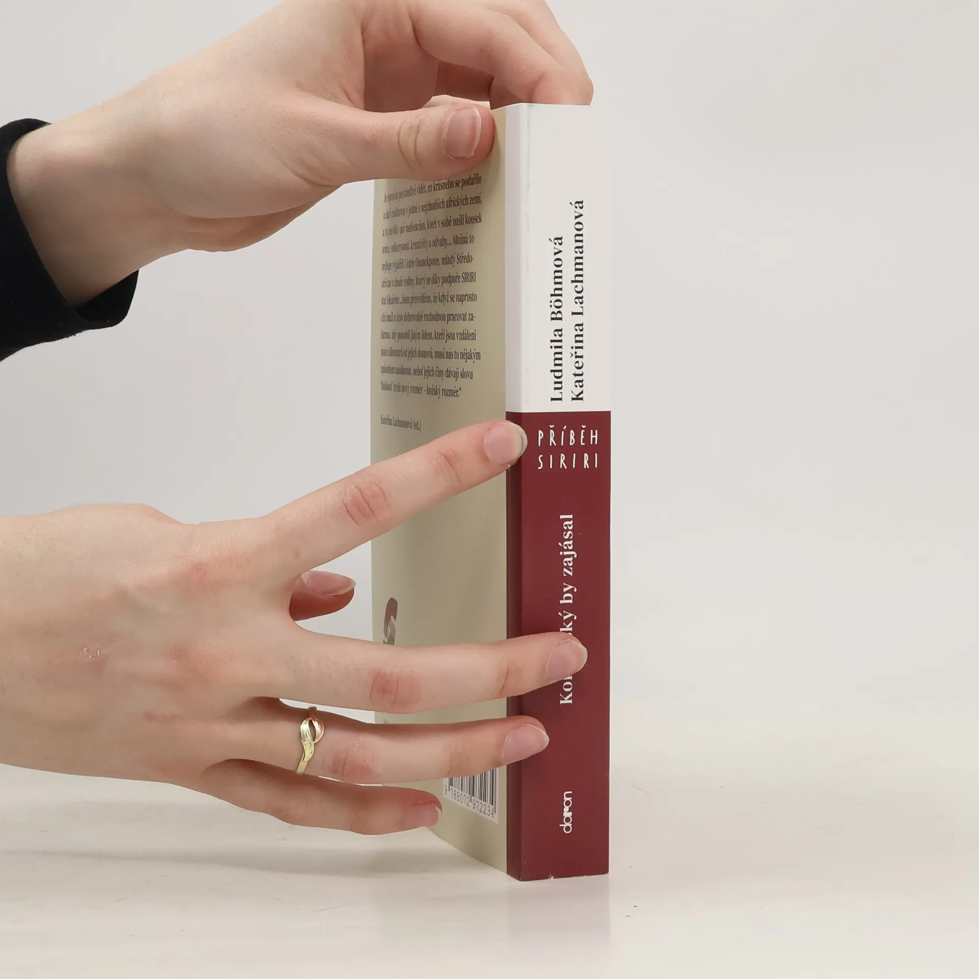 Kniha spoluzakladatelky obecně prospěšné společnosti SIRIRI Ludmily Böhmové je osobní výpovědí na okolnosti vzniku, vývoje organizace, o mnoha cestách do Středoafrické republiky, motivaci a odvaze. V knize jsou zařazené komentáře a kratší texty od dalších současných či bývalých spolupracovníků organizace. „Středoafrická republika (SAR) je krásná, ale křehká země, která patří mezi nejchudší státy světa, uvádí se, že je v zemi jen jeden anesteziolog, v třídách sedí 200 až 300 prvňáčků, 70% populace je mladší 30 let... bylo to pro mě 15 let intenzivní práce v ČR i v SAR. Katka Lachmanová mě oslovila s nápadem, abych popsala 'příběh SIRIRI' svým pohledem. Jenže jak psát, aby nevznikla další stopadesátápátá kniha o Africe, o tom, jak někdo z bohaté Evropy jel pomáhat do chudé Afriky..? Možná to ani tolik není o Africe, ale o „vzájemnosti“, o které v SIRIRI mluvíme pořád dokola. Vyjadřuje ji i naše logo – věříme tomu, že pomáhání nejvíc pomáhá těm, kteří pomáhají a že solidarita nás může měnit k lepšímu,“ komentuje vznik knihy Ludmila Böhmová, která knihu pro nakladatelství Doron připravila ve spolupráci s psycholožkou a publicistkou Kateřinou Lachmanovou.