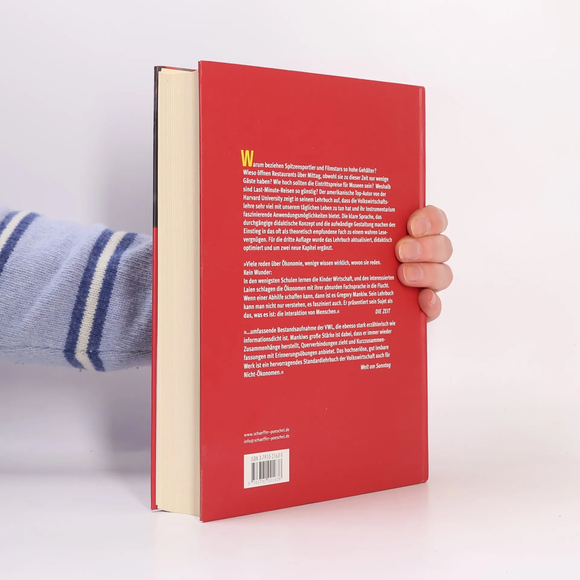 Warum beziehen Spitzensportler und Filmstars so hohe Gehälter? Wieso öffnen Restaurants über Mittag, obwohl sie zu dieser Zeit nur wenige Gäste haben? Der amerikanische Top-Autor von der Harvard University zeigt in seinem Lehrbuch, wie Volkswirtschaftslehre mit unserem täglichen Leben verknüpft ist und bietet faszinierende Anwendungsmöglichkeiten. Die klare Sprache und das durchgängige didaktische Konzept machen den Einstieg in das oft als theoretisch empfundene Fach zu einem wahren Lesevergnügen. Die dritte Auflage wurde aktualisiert, didaktisch optimiert und um zwei neue Kapitel ergänzt. Viele reden über Ökonomie, aber nur wenige wissen wirklich, wovon sie sprechen. In den wenigsten Schulen lernen Kinder Wirtschaft, und die komplexe Fachsprache der Ökonomen schreckt oft ab. Gregory Mankiw schafft Abhilfe: Sein Lehrbuch ist verständlich und fesselnd, präsentiert das Thema als die Interaktion von Menschen. Es bietet eine umfassende Bestandsaufnahme der Volkswirtschaftslehre, die sowohl erzählerisch als auch informationsdicht ist. Mankiws Stärke liegt in der Herstellung von Zusammenhängen, Querverbindungen und der Bereitstellung von Kurzzusammenfassungen mit Erinnerungsübungen. Das Werk ist ein hervorragendes Standardlehrbuch der Volkswirtschaft, auch für Nicht-Ökonomen.