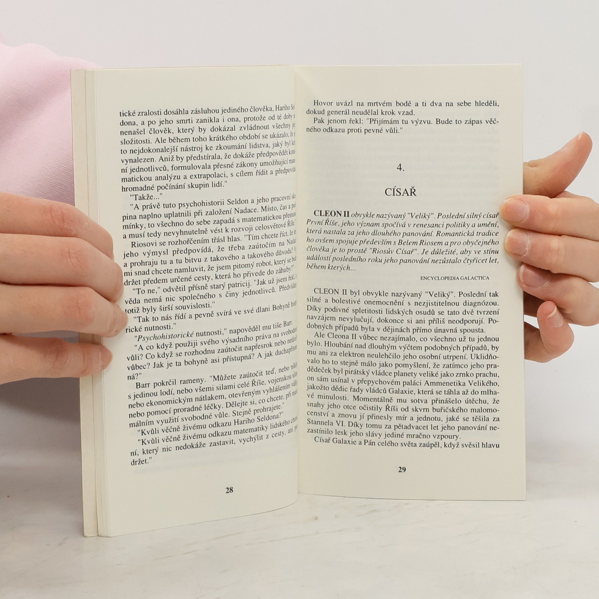Proroctví Hariho Seldona se naplnilo. Nastal Pád. Kdysi mohutná galaktická Říše se rozpadla; jejím troskám teď vládne poslední císař Kleon II. Nadace však důsledně plní Seldonův původní plán – co nejvíce zkrátit období třiceti tisíc let předpokládaného období temna – a úspěšně překonává další krize. Na scénu však vstupuje činitel, s nímž nepočítal ani geniální psychohistorik: mutant s naprosto nepředvídatelnými biologickými vlastnostmi.... celý text