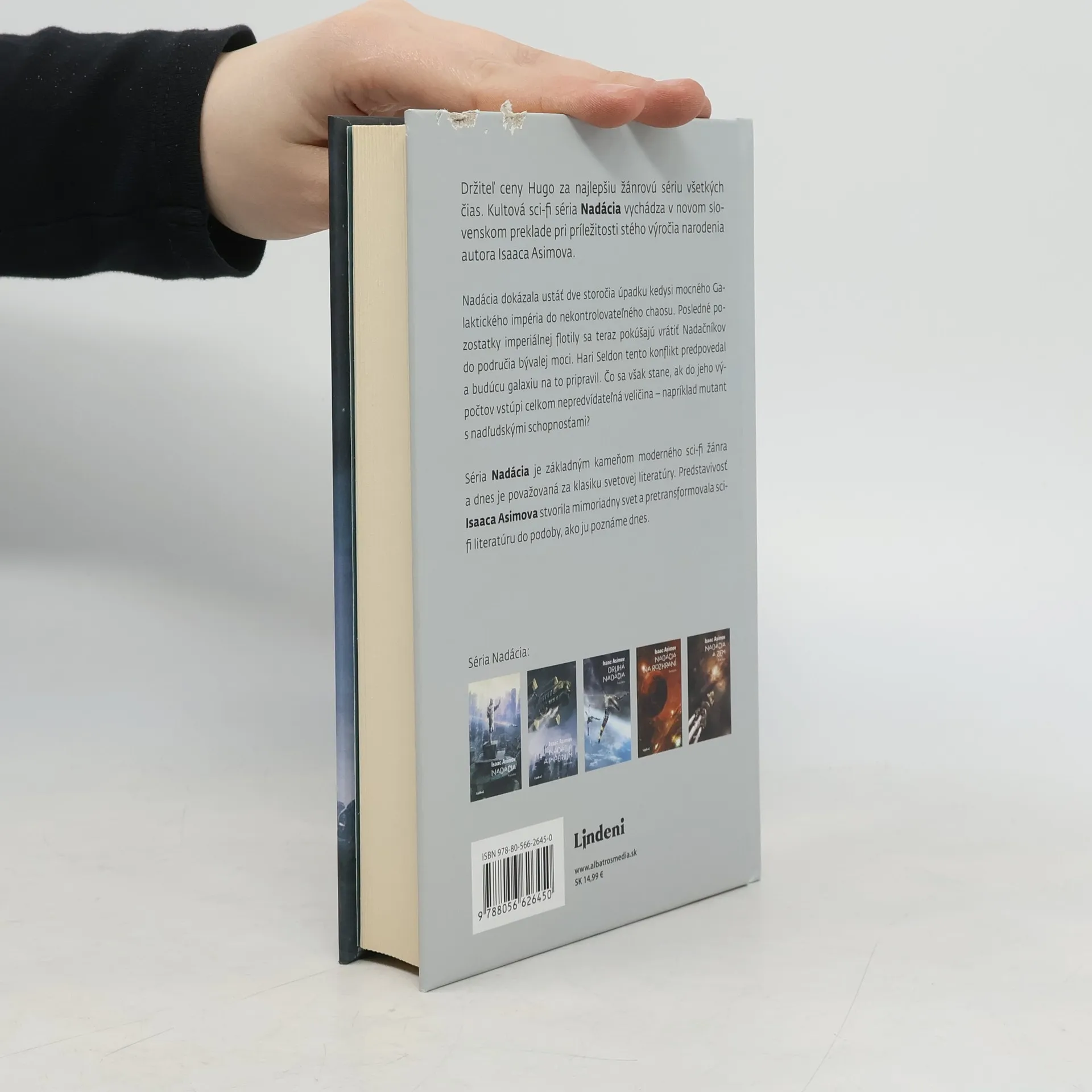 Držiteľ ceny Hugo za najlepšiu žánrovú sériu všetkých čias. Kultová sci-fi séria Nadácia vychádza v novom slovenskom preklade pri príležitosti stého výročia narodenia autora Isaaca Asimova. Nadácia dokázala ustáť dve storočia úpadku kedysi mocného Galaktického impéria do nekontrolovateľného chaosu. Posledné pozostatky imperiálnej flotily sa teraz pokúšajú vrátiť nadačníkov do područia bývalej moci. Hari Seldon tento konflikt predpovedal a budúcu galaxiu na to pripravil. Čo sa však stane, ak do jeho výpočtov vstúpi celkom nepredvídateľná veličina – napríklad mutant s nadľudskými schopnosťami? Séria Nadácia je základným kameňom moderného sci-fi žánra a dnes je považovaná za klasiku svetovej literatúry. Predstavivosť Isaaca Asimova stvorila mimoriadny svet a pretransformovala sci-fi literatúru do podoby, ako ju poznáme dnes.