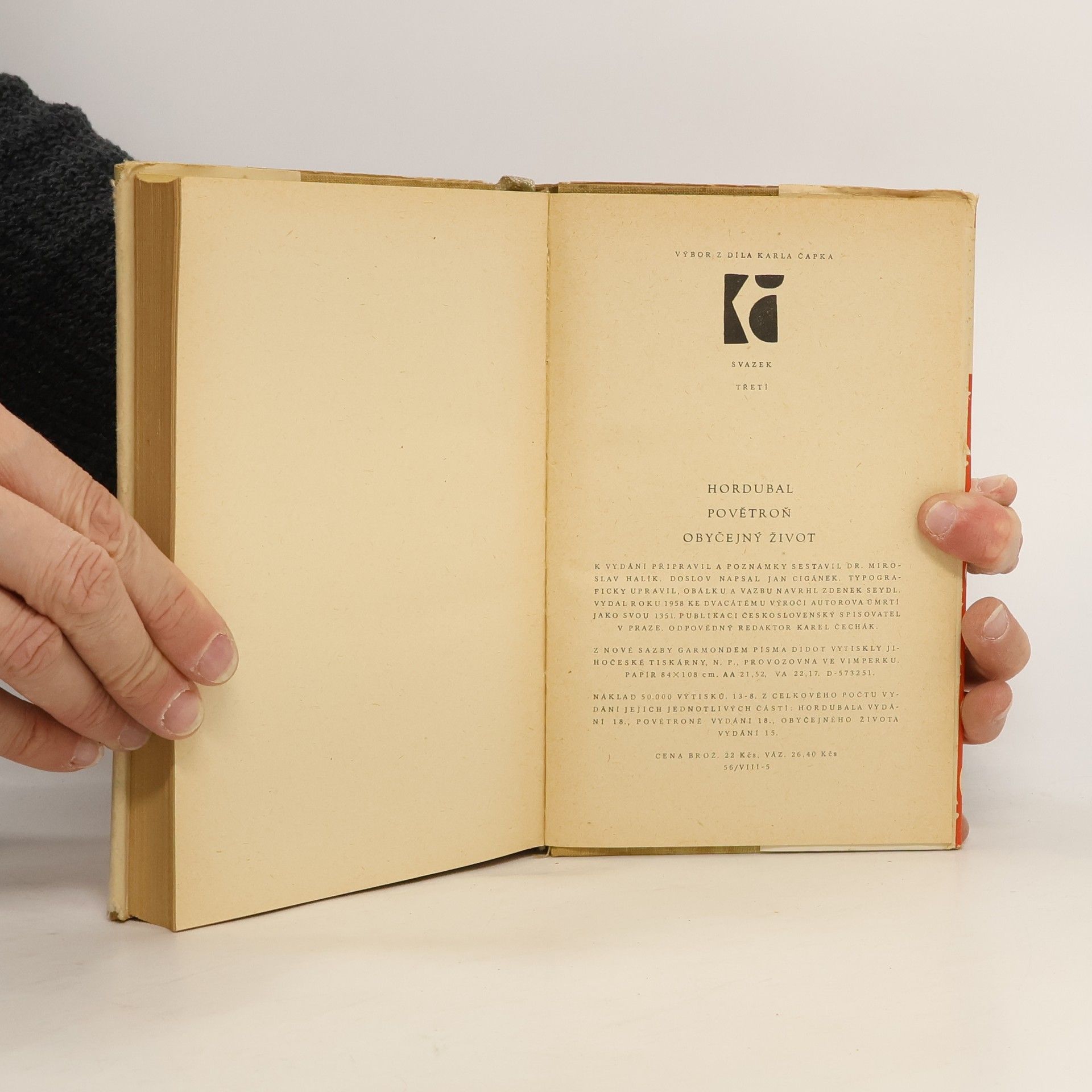 Hordubal. Povětroň. Obyčejný život, Karel Čapek