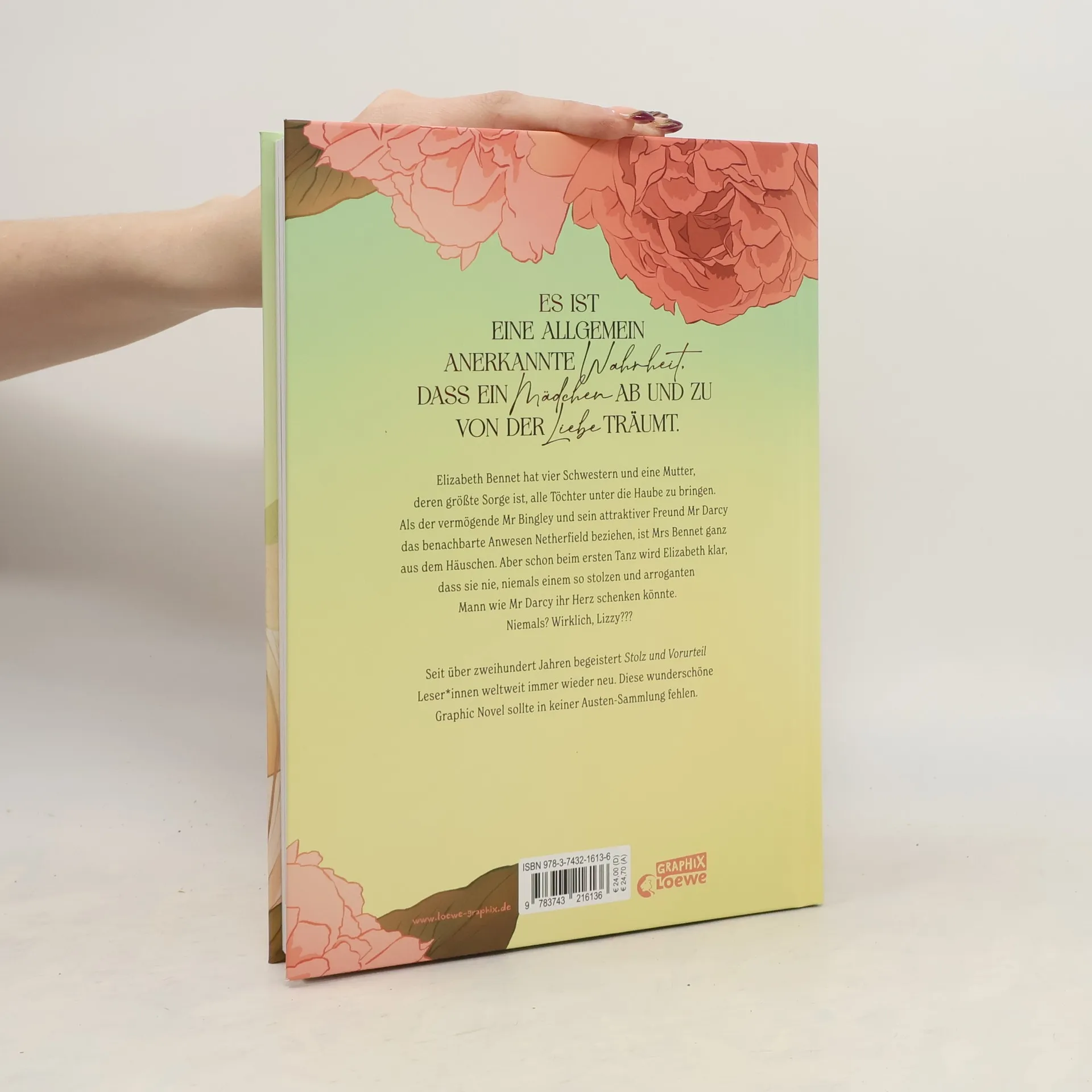 Eingestiegen auf #1 der Lovelybooks-Charts! Es ist eine allgemein anerkannte Wahrheit, dass ein Mädchen ab und zu von der Liebe träumt Elizabeth Bennet hat vier Schwestern und eine Mutter, deren größte Sorge ist, alle Töchter unter die Haube zu bringen. Als der vermögende Mr Bingley und sein attraktiver Freund Darcy das benachbarte Anwesen Netherfield beziehen, ist Mrs Bennet ganz aus dem Häuschen. Aber schon beim ersten Tanz wird Elizabeth klar, dass sie nie, niemals einem so stolzen und arroganten Mann wie Mr Darcy ihr Herz schenken könnte. Niemals? Wirklich, Lizzy??? Erlebe den Klassiker neu als hinreißende Graphic Novel Seit über zweihundert Jahren begeistert Jane Austens Stolz und Vorurteil Leserinnen weltweit immer wieder neu. Diese wunderschöne Graphic Novel sollte in keiner Austen-Sammlung fehlen. Mit ihren bezaubernden Illustrationen verwandelt Tara Spruit den zeitlosen Klassiker Stolz und Vorurteil in eine hochwertige Graphic Novel , die sich nicht nur als Geschenkausgabe für Jane Austen-Begeisterte eignet, sondern alle Regency-Fans zum Träumen einlädt. Verliebe auch du dich unwiederbringlich in den ultimativen Book Boyfriend Darcy!