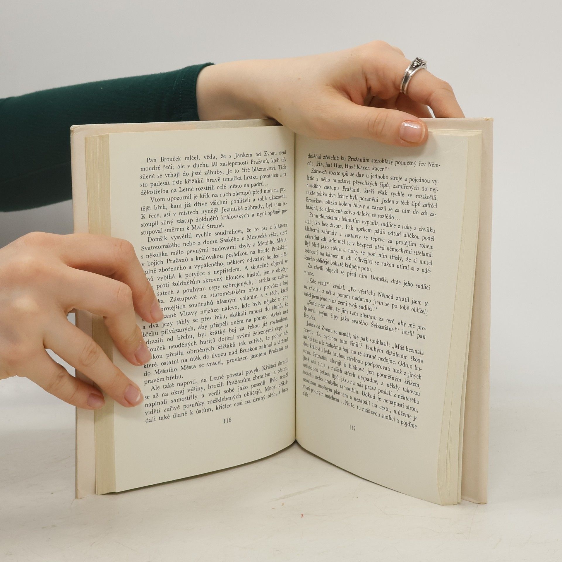 V tomto v pořadí třetím, nejzdařilejším a nejslavnějším zpracování broučkovského motivu, ocitne se pan Brouček ze stol. 19. v roce 1410. Autor líčí prostředí husitské Prahy i život v ní a heroickým prostředím provádí svého nehrdinského hrdinu. Na proti kladu sobecky pohodlného a zbabělého chameleonství Broučkova a mravní opravdovosti, statečnosti a obětavosti husitů ukazuje Sv. Čech úpadkovost své doby.